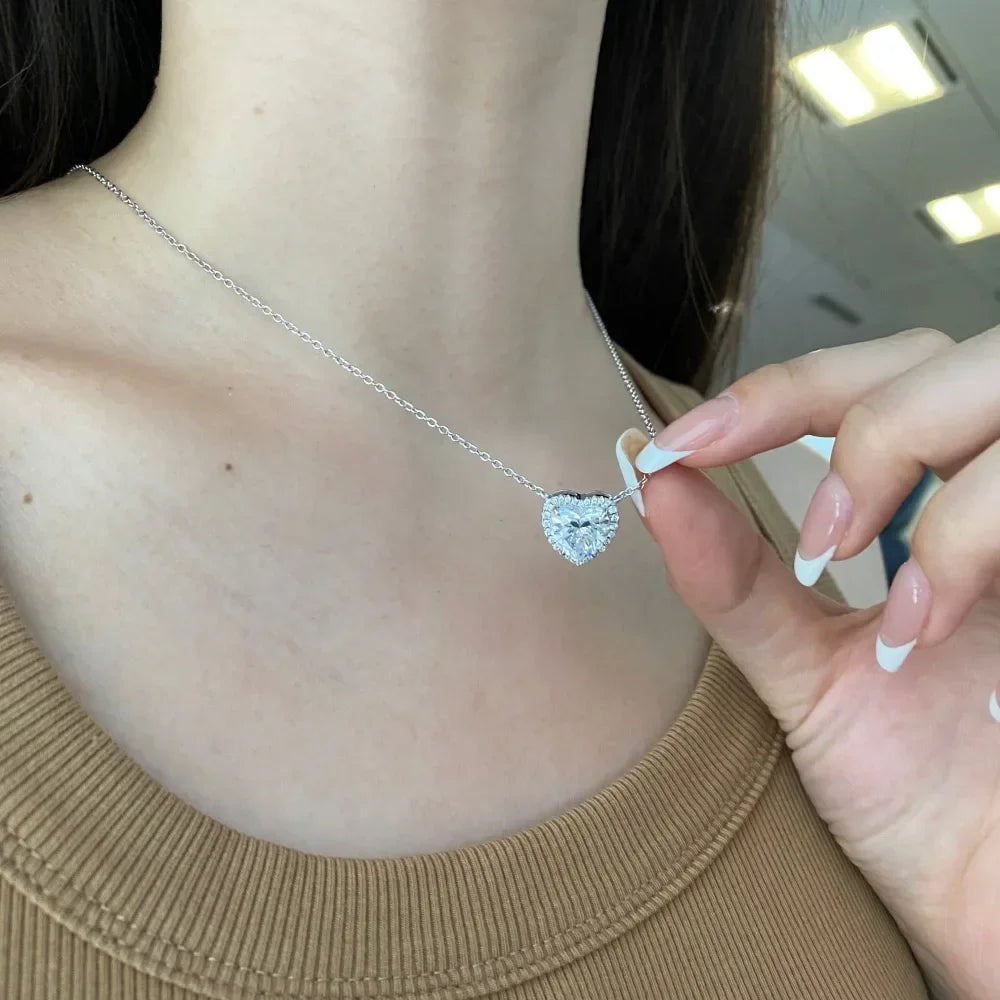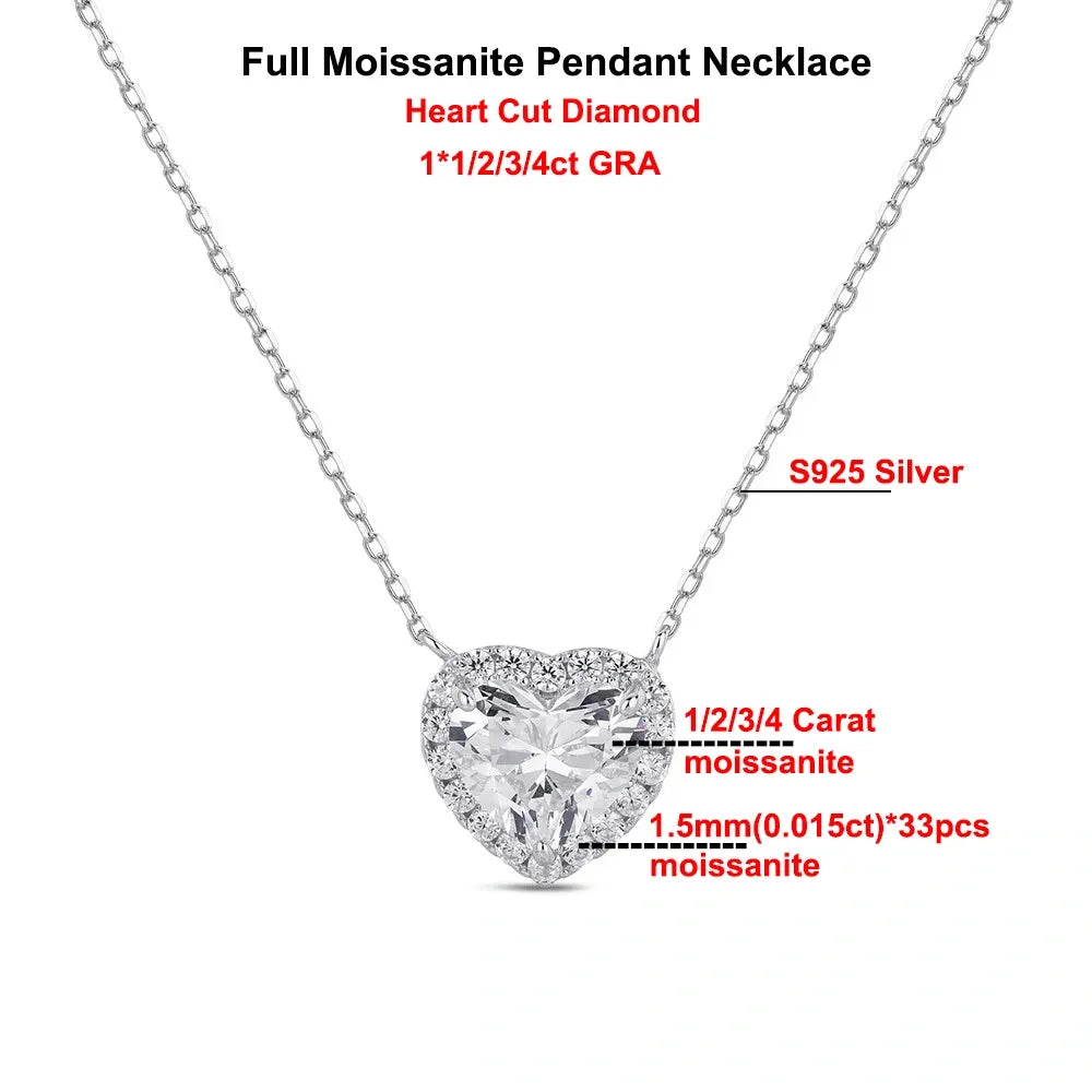 1/2/3/4ct Heart Cut Full Moissanite Diamond Pendant Necklace for Women 925 Sterling Silver Wedding Neck Chain with GRA Certified