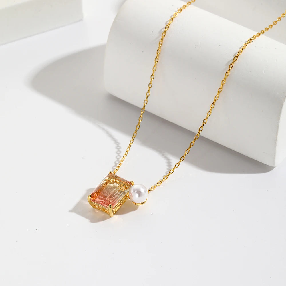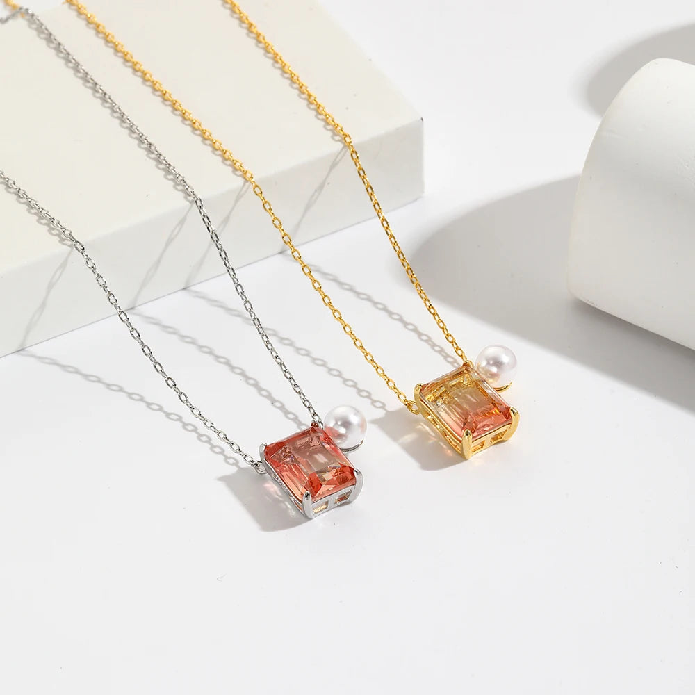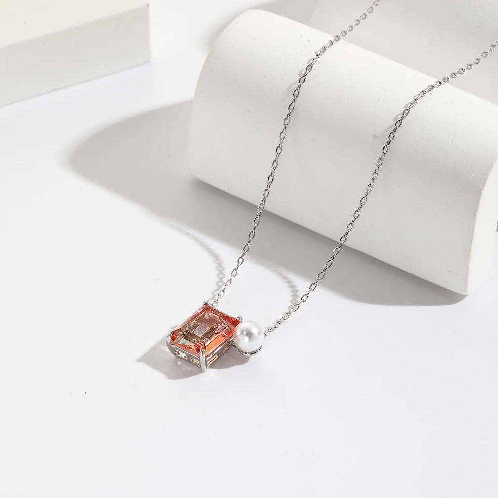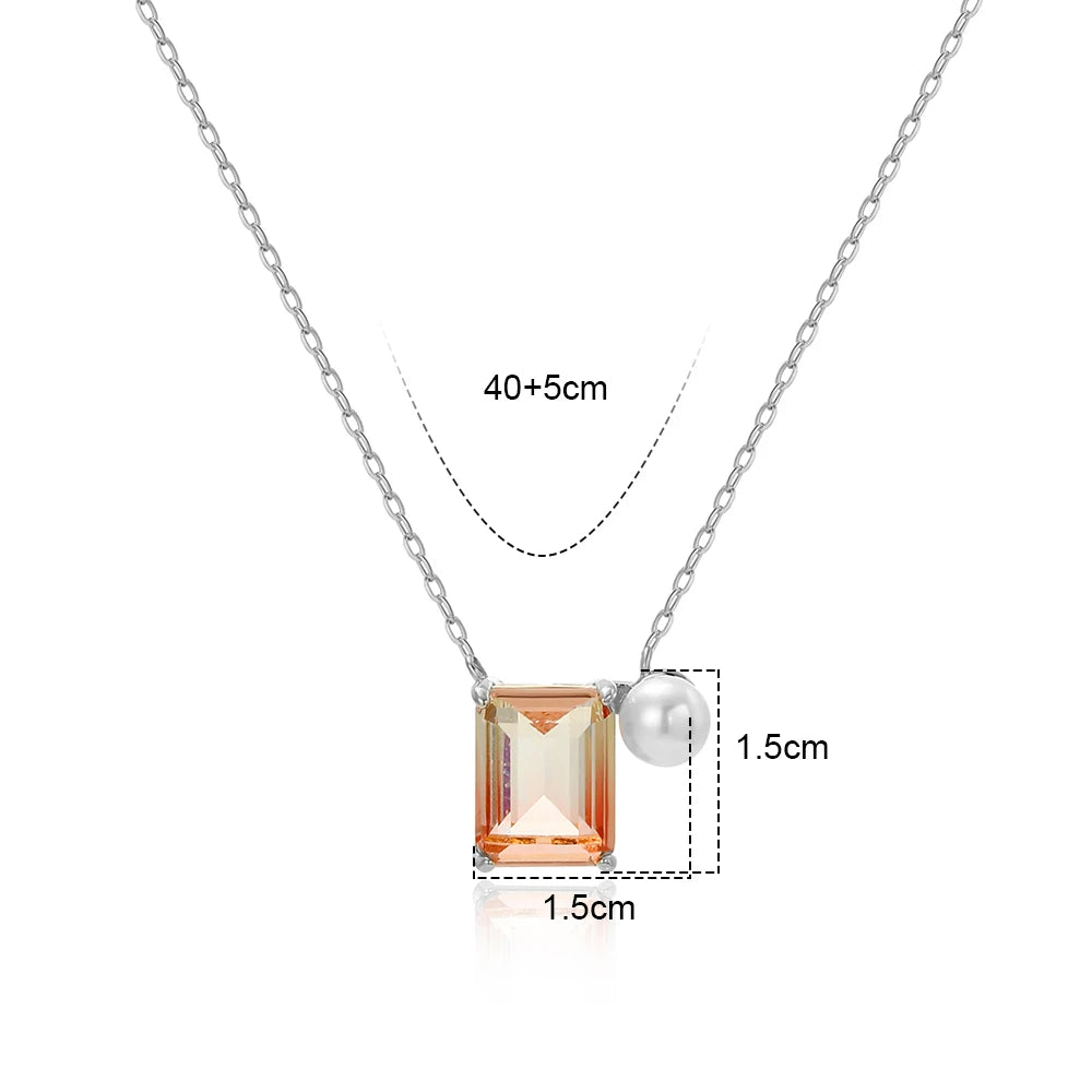 2024 New Drop Shipping Gradient Color Square Crystal Zirconia Pendants & Necklaces Jewelry Collar Colar De Plata