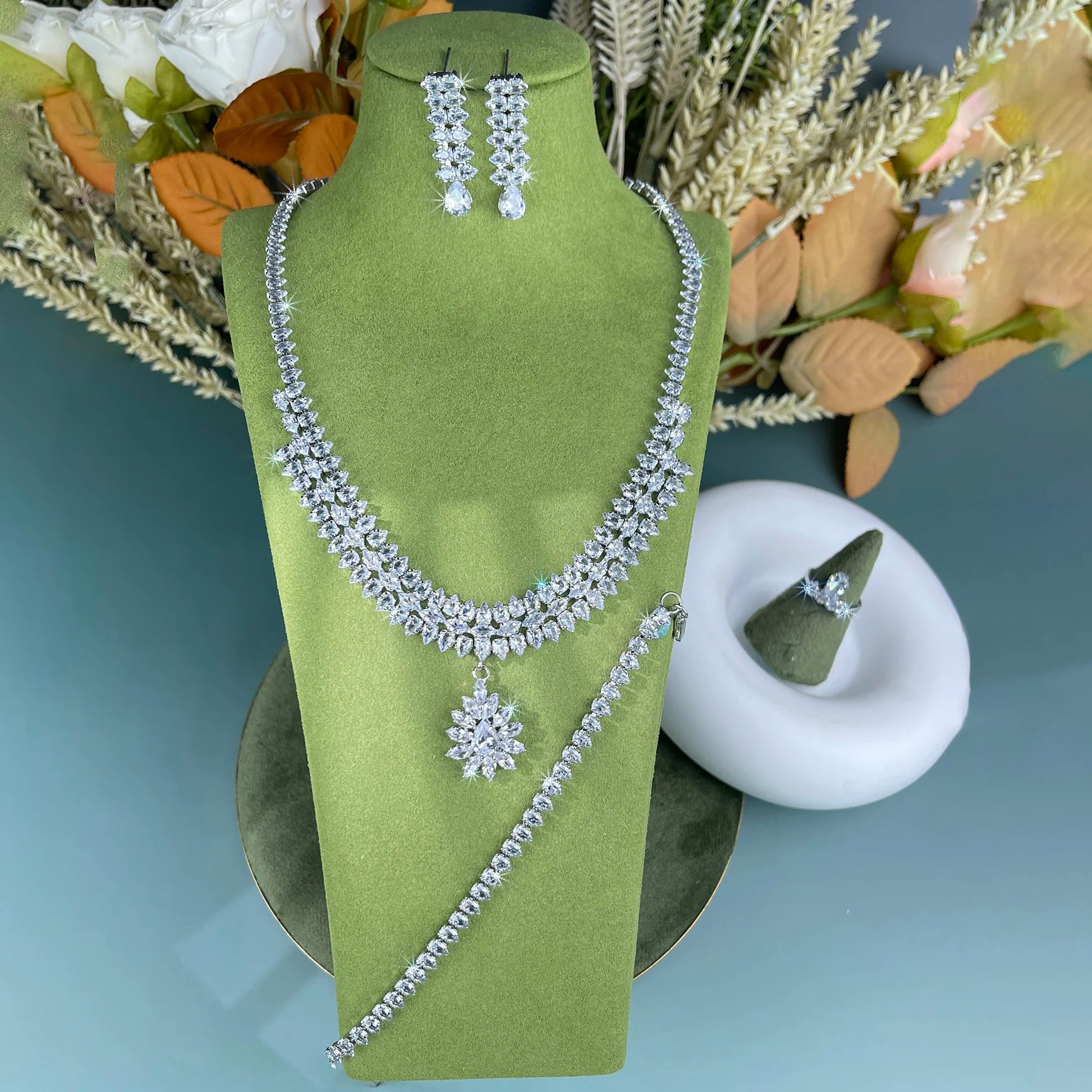 2025 5pcs/set wedding celebration luxurious cubic zirconia jewelry set classic fashionable for prom and daily wear