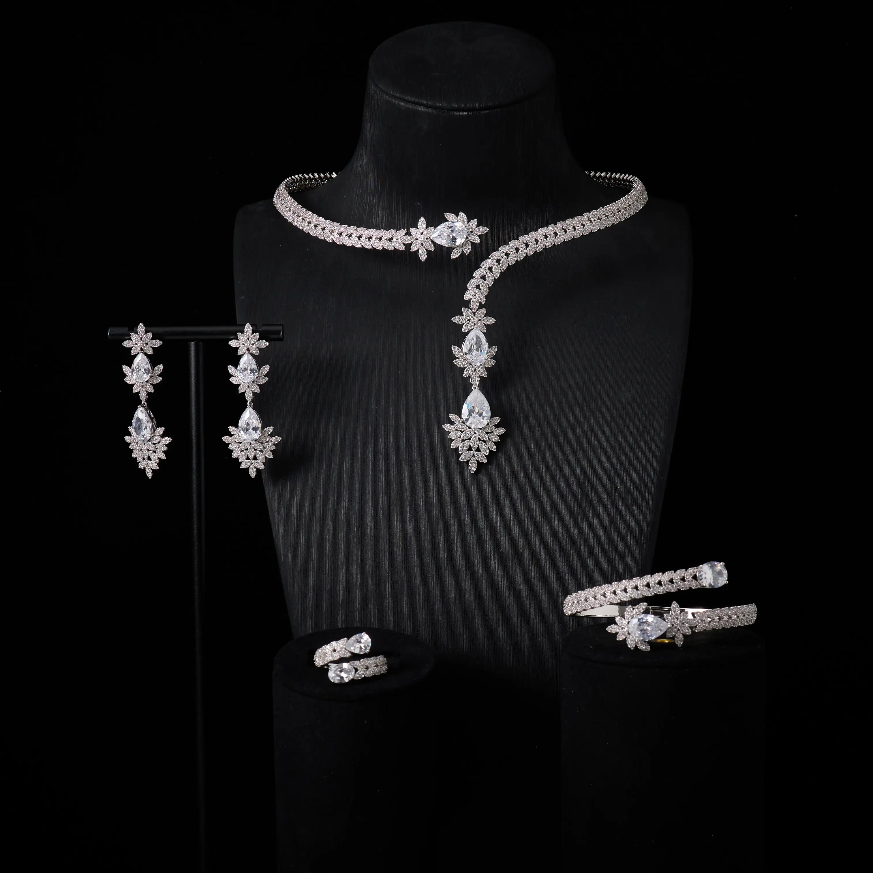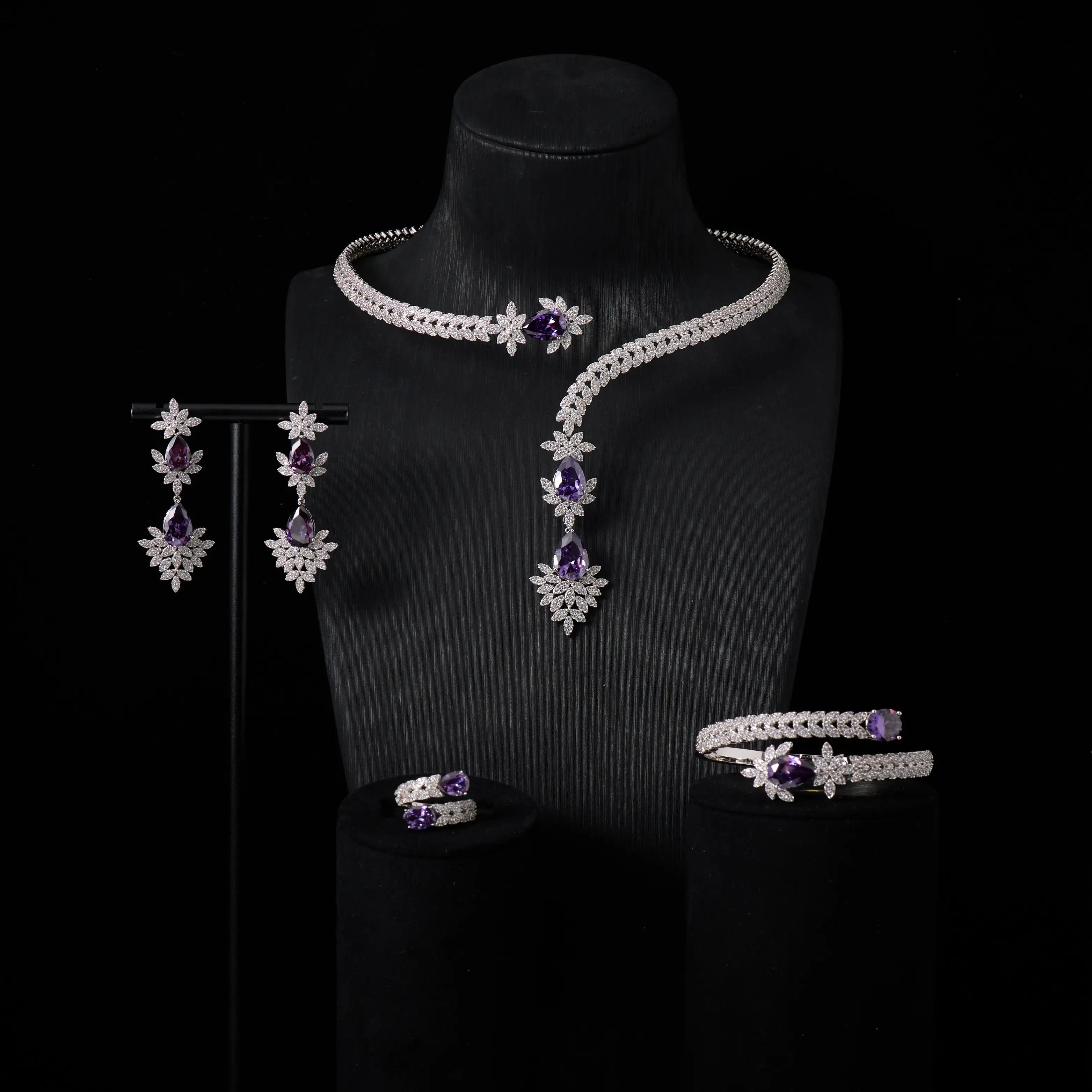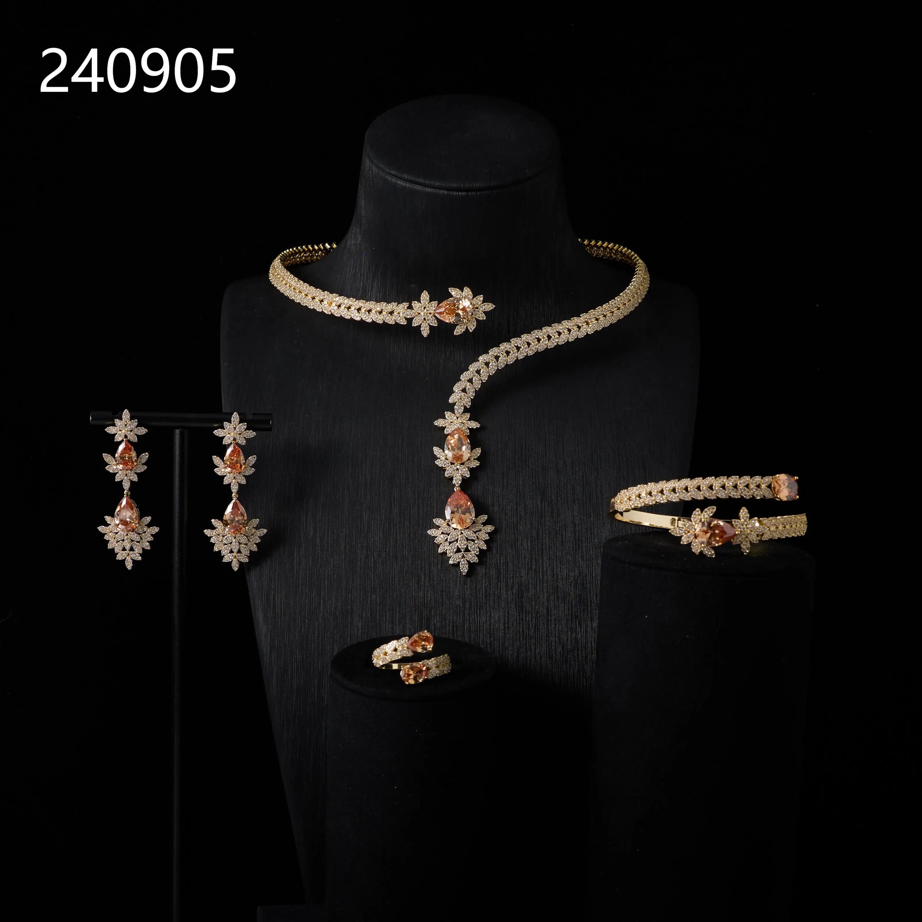 240905 Cuff Necklace Set for Women Bridal Wedding Party Cubic Zirconia Jewelry Sets For Wedding Party Dress Suits Jewelry set