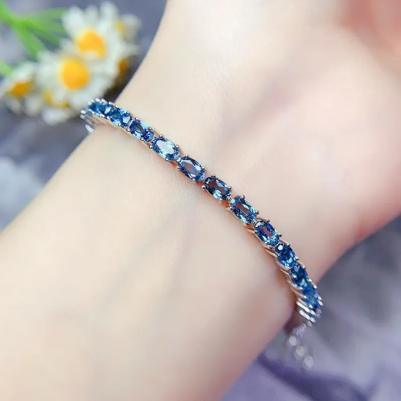 Blue Topaz Silver 925 Tennise Bracelet