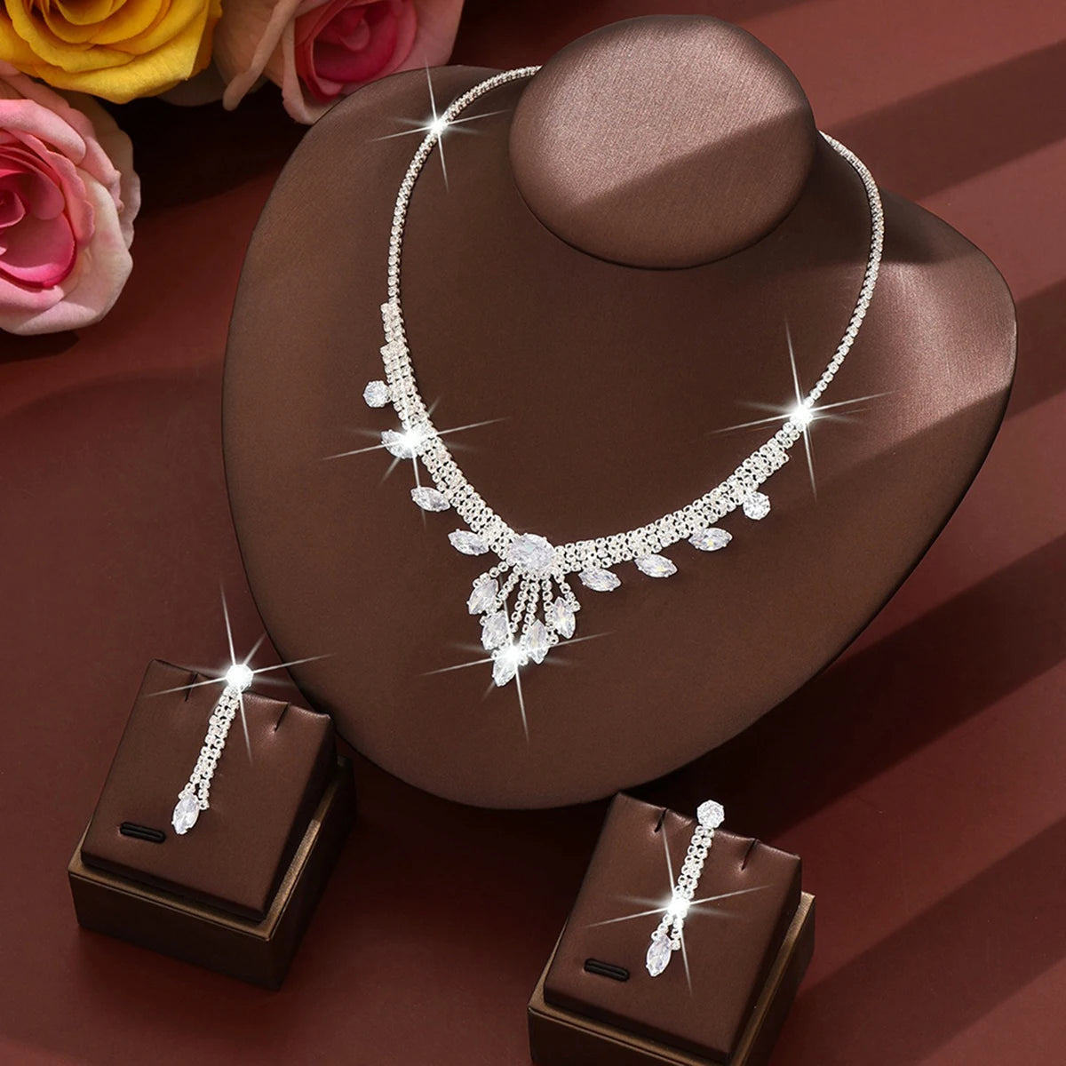SPECIFICATIONSBrand Name: NoEnName_NullFine or Fashion: FashionGender: WomenHign-concerned Chemical: NoneItem Type: jewelry setsJewelry Sets Type: Necklace/EarringsMaterial: RhinestoneMetals Type: CopperModel Number: S477Occasion: WeddingOrigin: Mainland ChinaPlating: No PlatingShape\pattern: Water DropStyle: Vintage