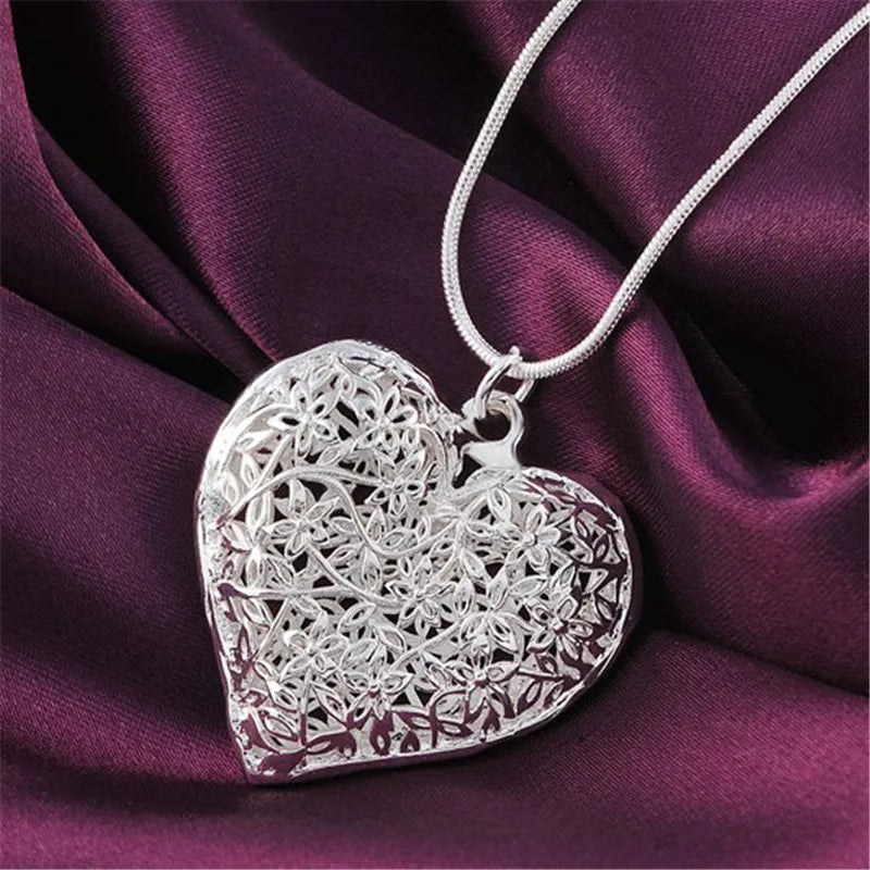 925 Sterling Silver 18-30 Inch Carved Heart Pendant Snake Chain Necklace For Women Fashion Wedding Party Charm Jewelry