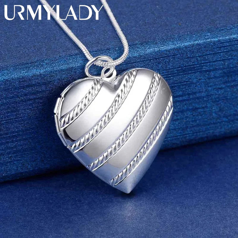 925 Sterling Silver Necklace 18 inches Heart photo frame Pendant For Women Fashion trend Jewelry Christmas Gifts