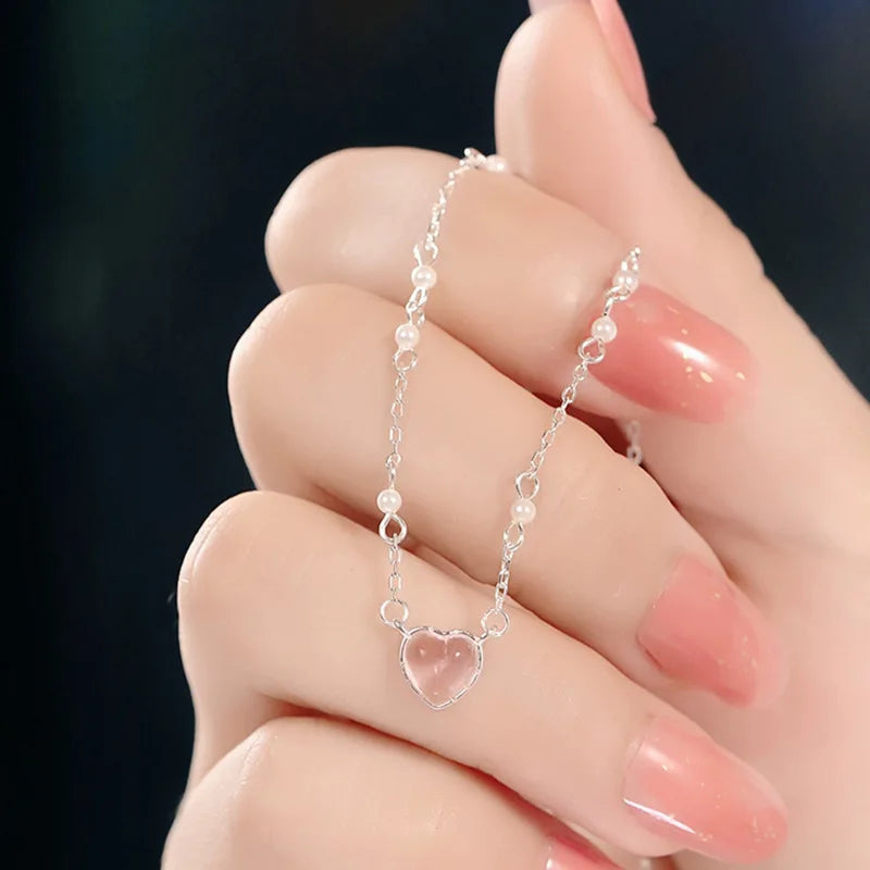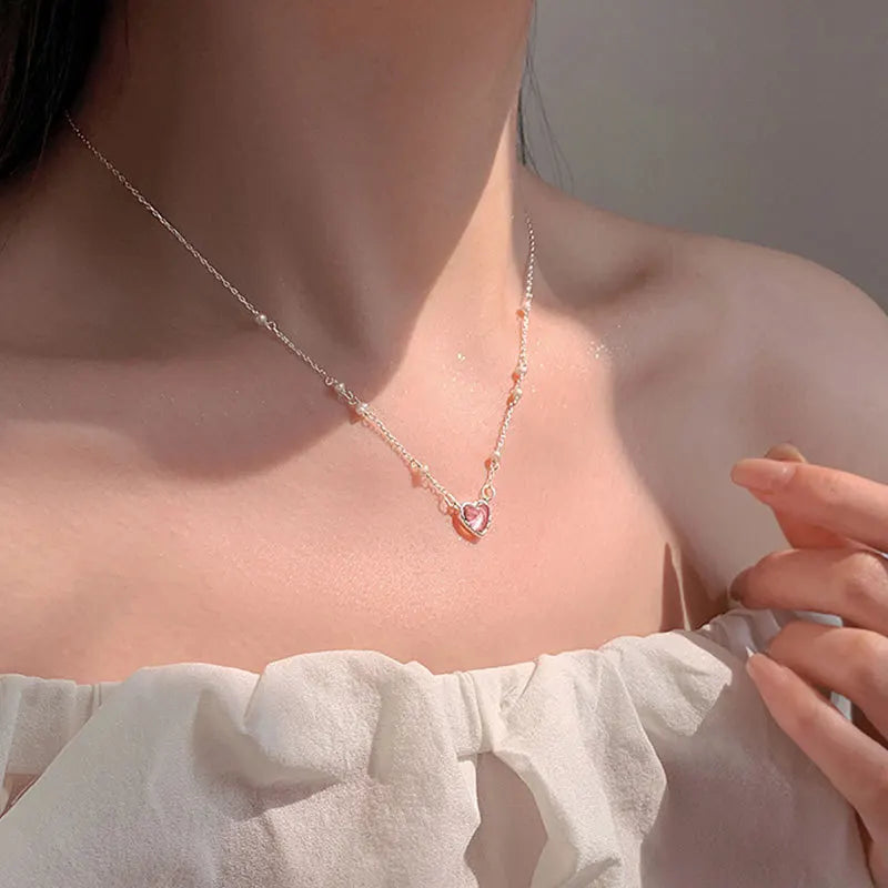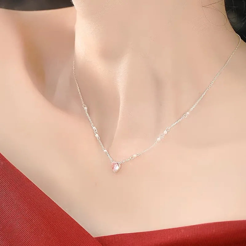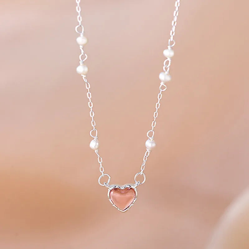 925 Sterling Silver Pink Love Pearl Necklace New Style Temperament Clavicle Chain Women's Sweet Neckchain Jewelry Wholesale