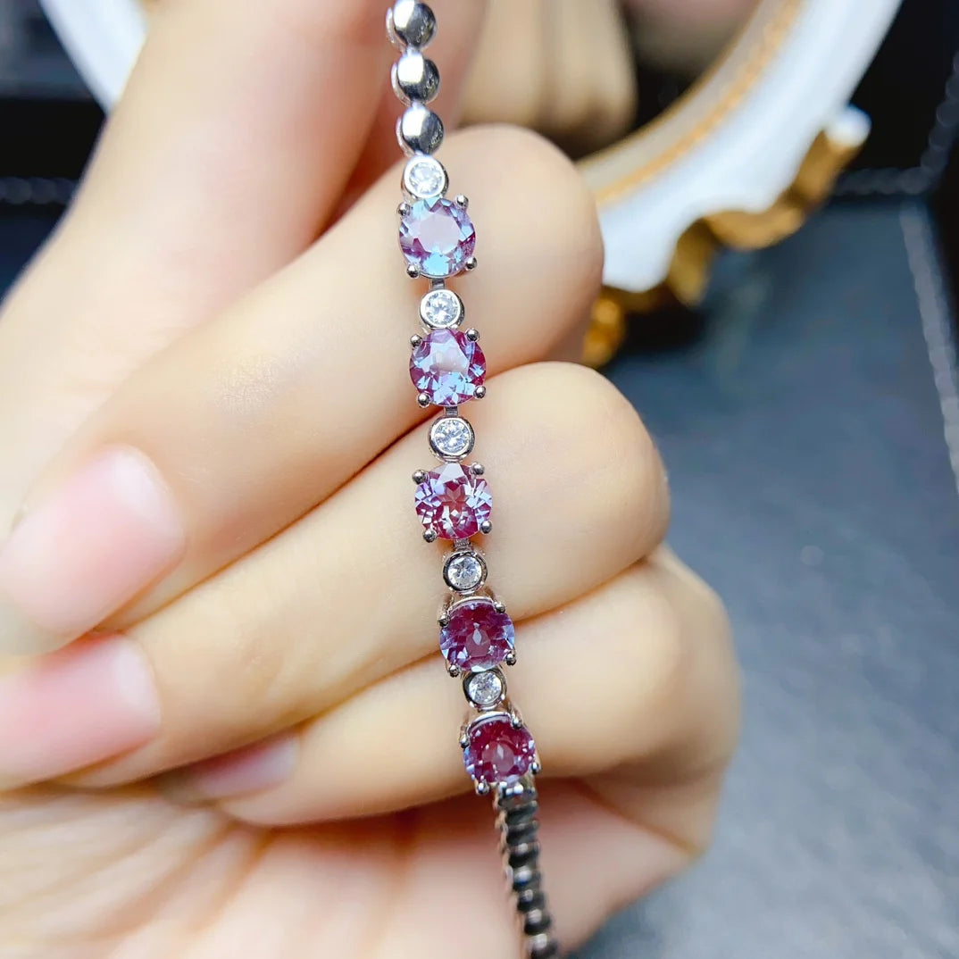 SPECIFICATIONS925 Silver Bracelet: Sterling Silver Alexandrite BraceletAlexandrite Jewelry: Alexandrite Bracelet 925Bracelets Type: Chain & Link BraceletsBrand Name: NoEnName_NullCertificate: NoCertificate Type: Third Party AppraisalFine Jewelry: Silver Alexandrite BraceletFine or Fashion: FineGender: WomenHign-concerned Chemical: NoneItem Type: BRACELETSItem Weight: about 4.35gMain Stone: AlexandriteMetal Stamp: 925,SterlingMetals Type: SilverModel Number: YM03136BOccasion: EngagementOrigin: Mainland ChinaShape\pattern: RoundSide...