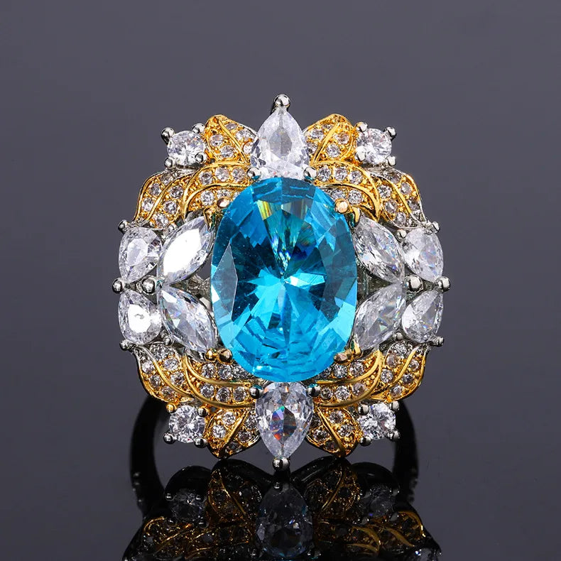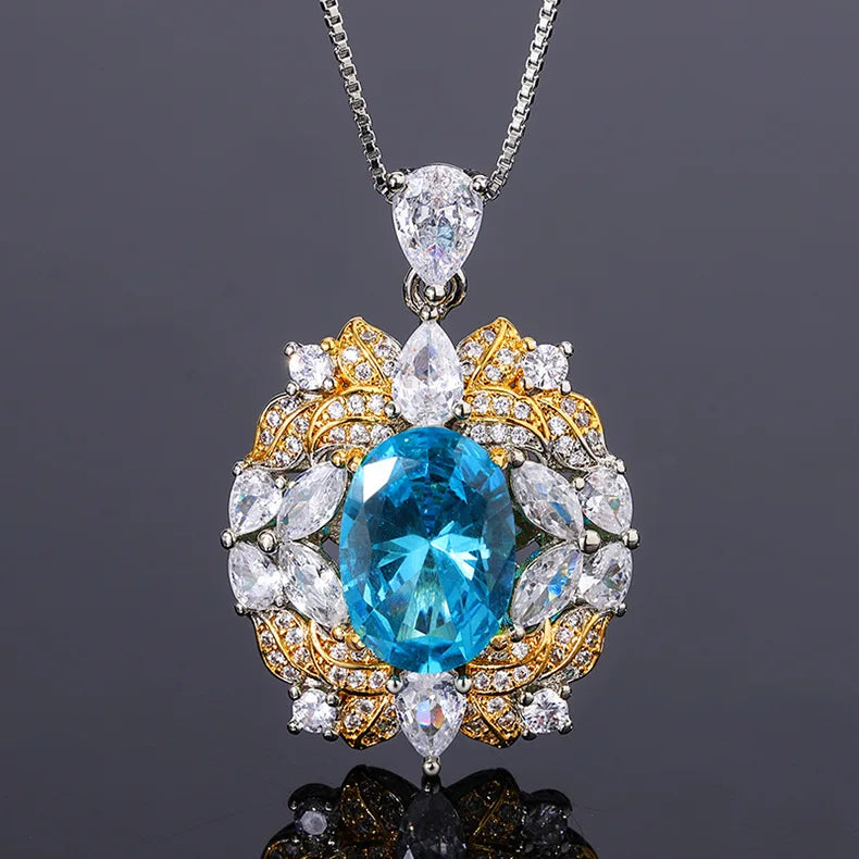 Aquamarine Necklace Zircon Pendant Necklace for Women European and American Style Emerald Ring Red Tourmaline Ring