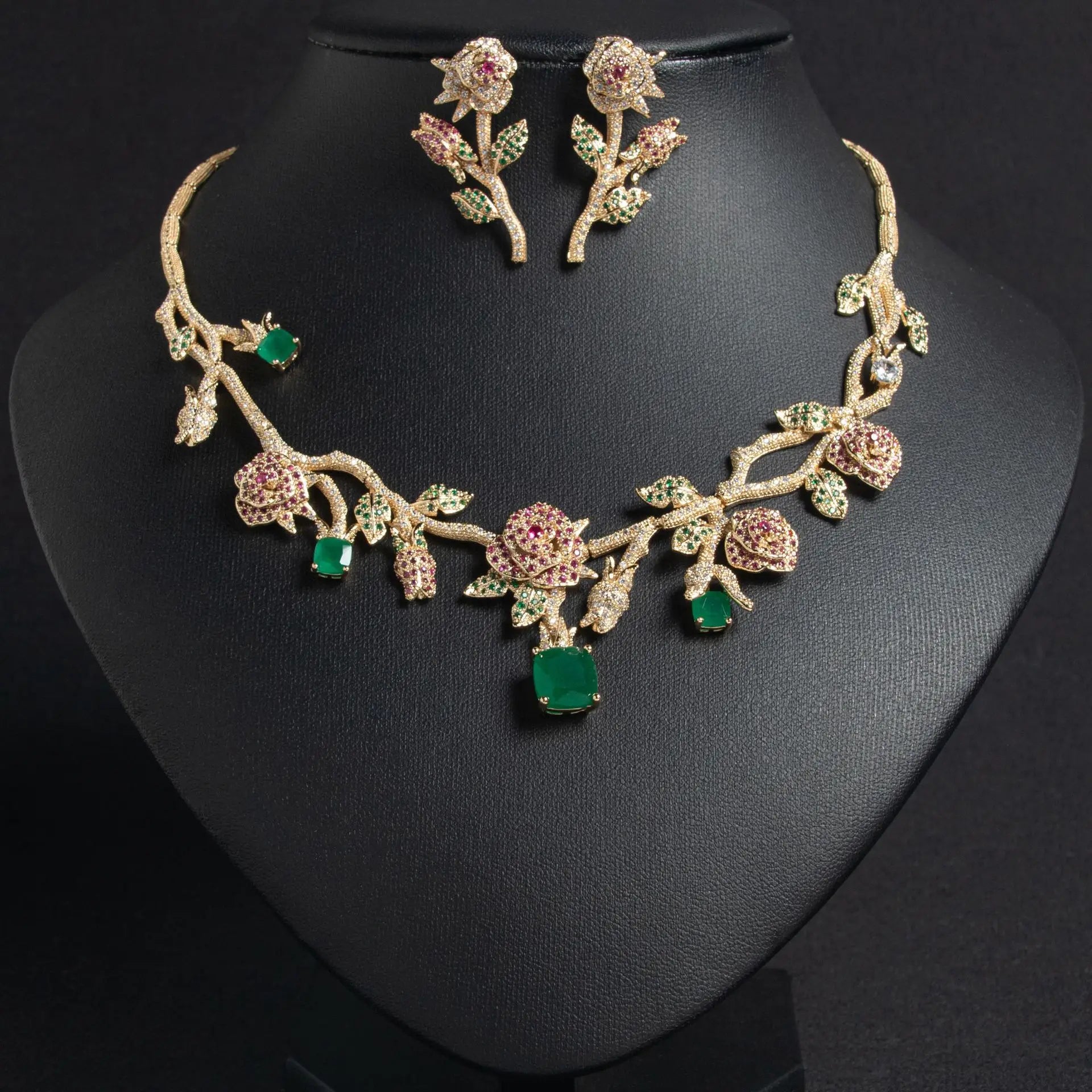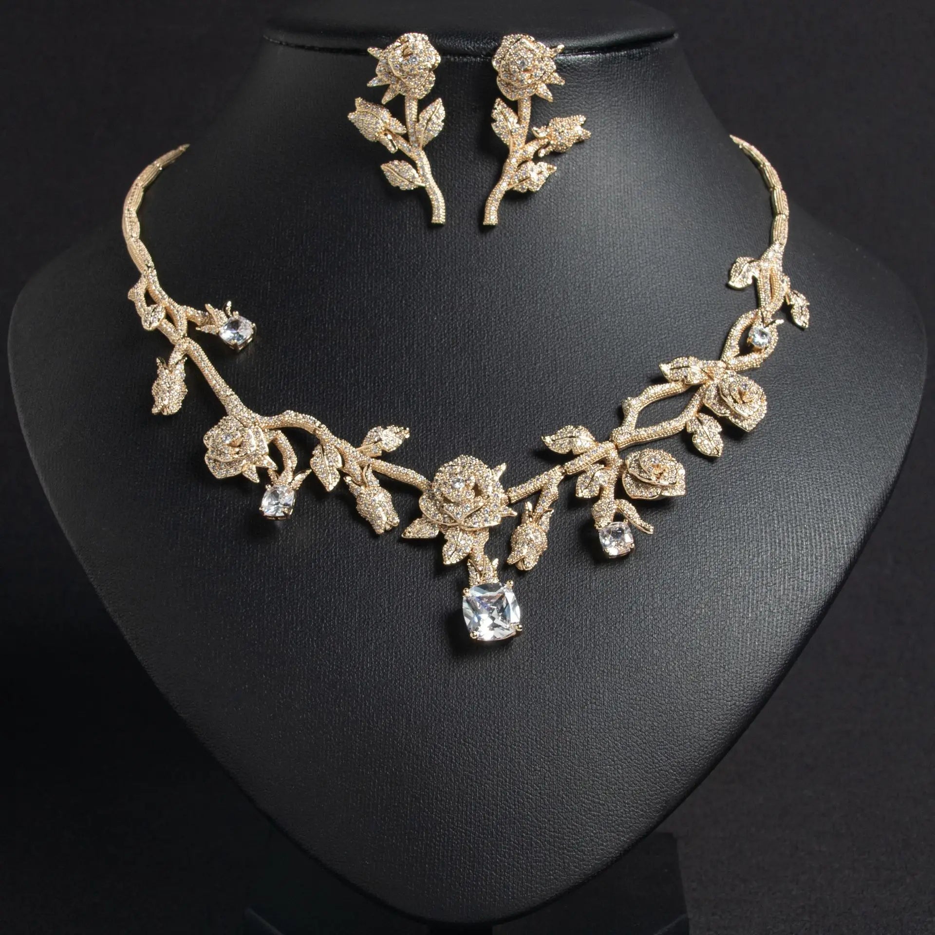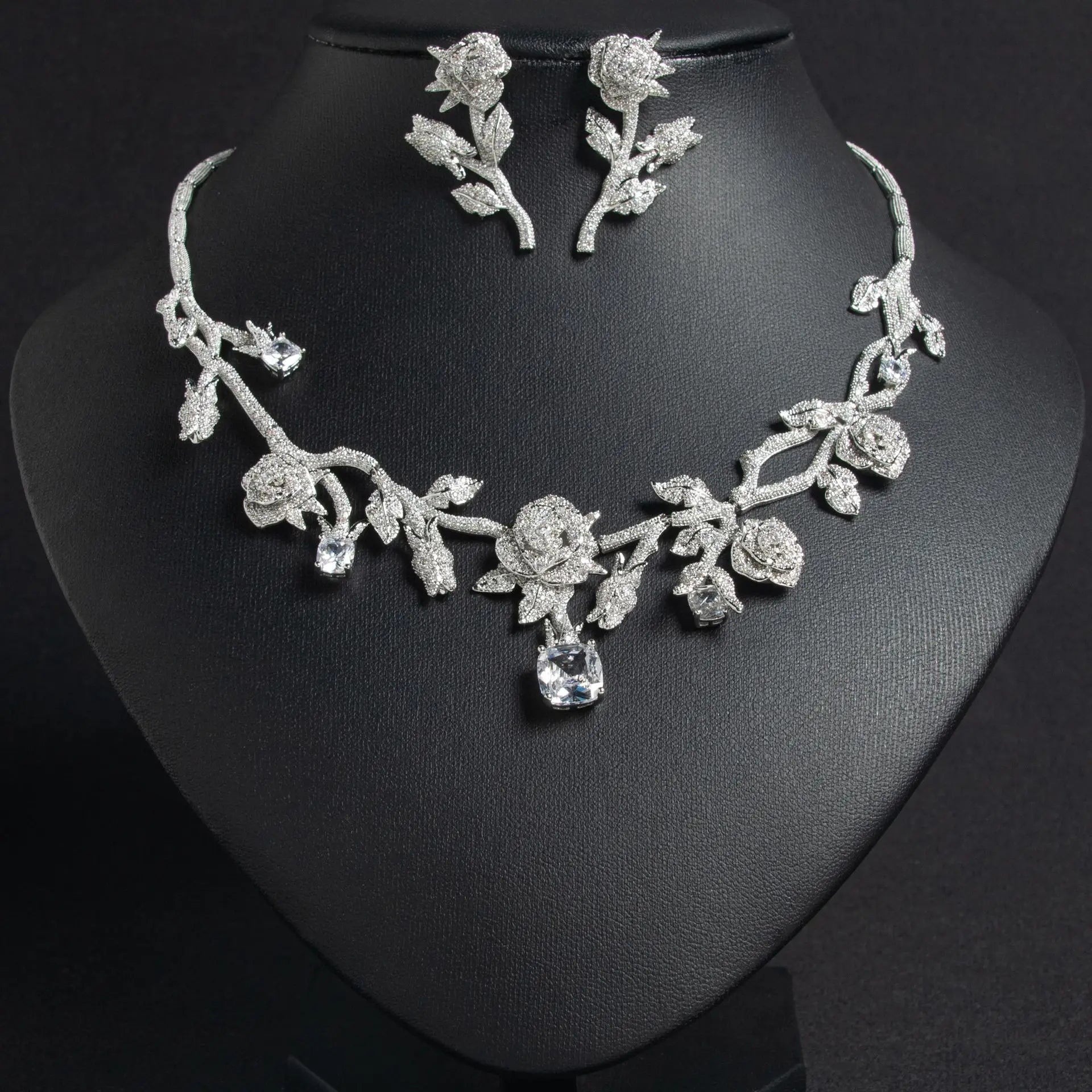 Autumn and winter earrings temperament flowers rose necklace full of diamonds suit women