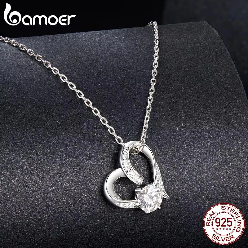 BAMOER Heart Necklaces for Women, Forever Love Moissanite 925 Sterling Silver Minimalist Heart Pendant Necklace Engagement Jewel