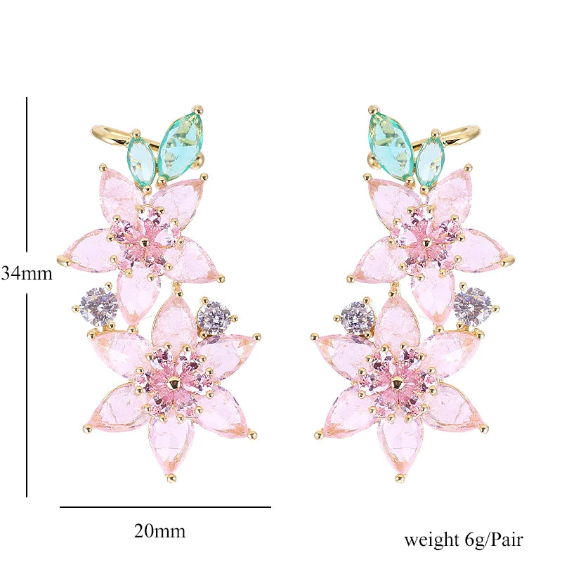SPECIFICATIONSBack Finding: Push-backBrand Name: NoEnName_NullCN: JiangsuColor: pink,green and greyEarring Type: Stud EarringsFine or Fashion: FashionGender: WomenHign-concerned Chemical: NoneItem Type: EarringsMaterial: cubic zirconiaMetals Type: Copper AlloyName: Beautiful Ice Stone Flower Cuff EarringsOrigin: Mainland ChinaShape\pattern: PlantStyle: Cute/RomanticType: ear stud