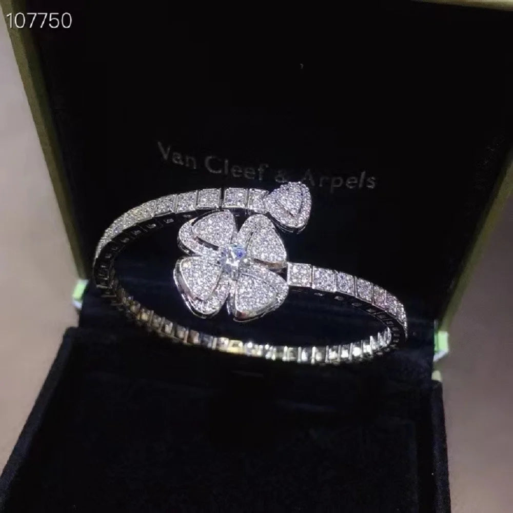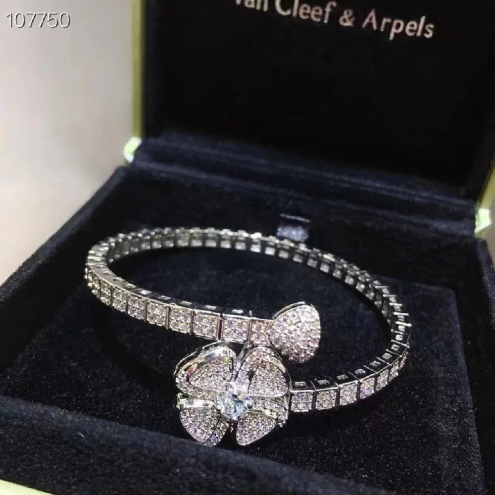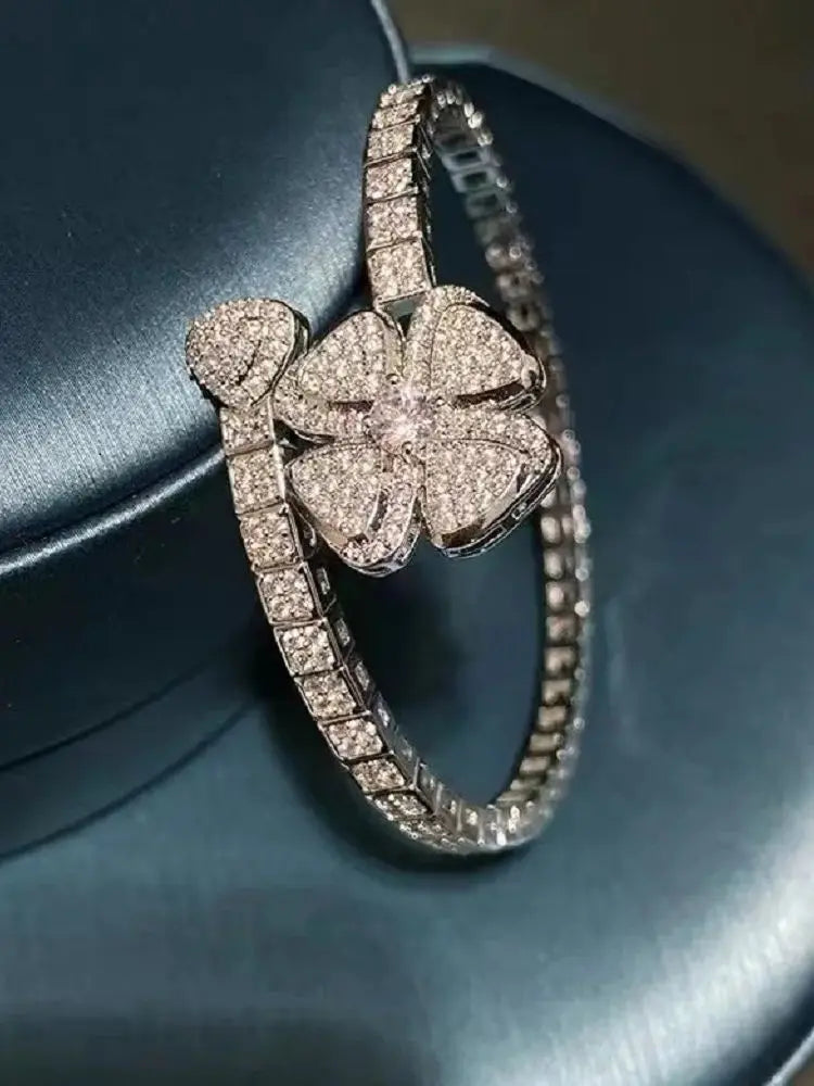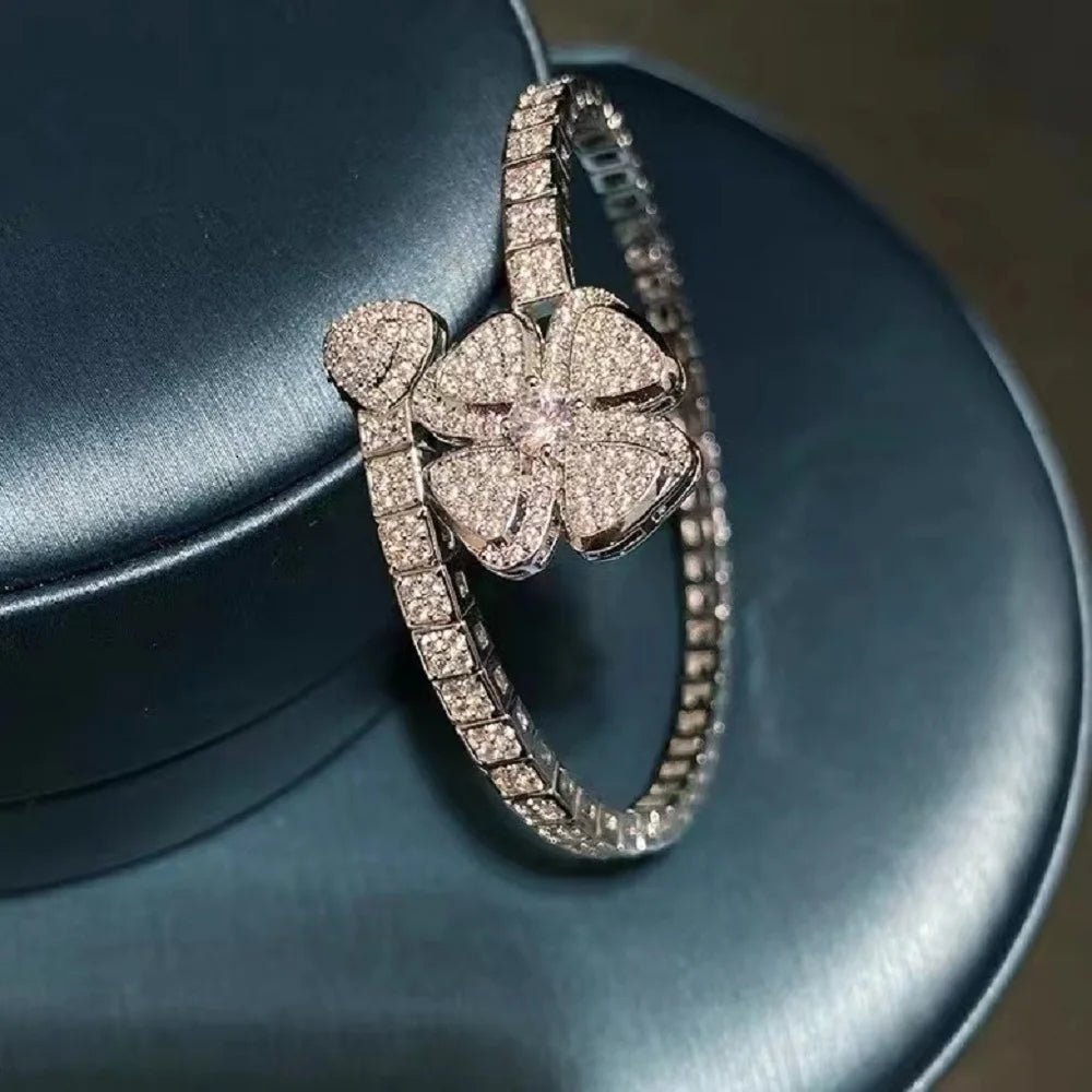 Bilincolor Designer Open Spring Flower Zircon Luxury Bracelet for Women