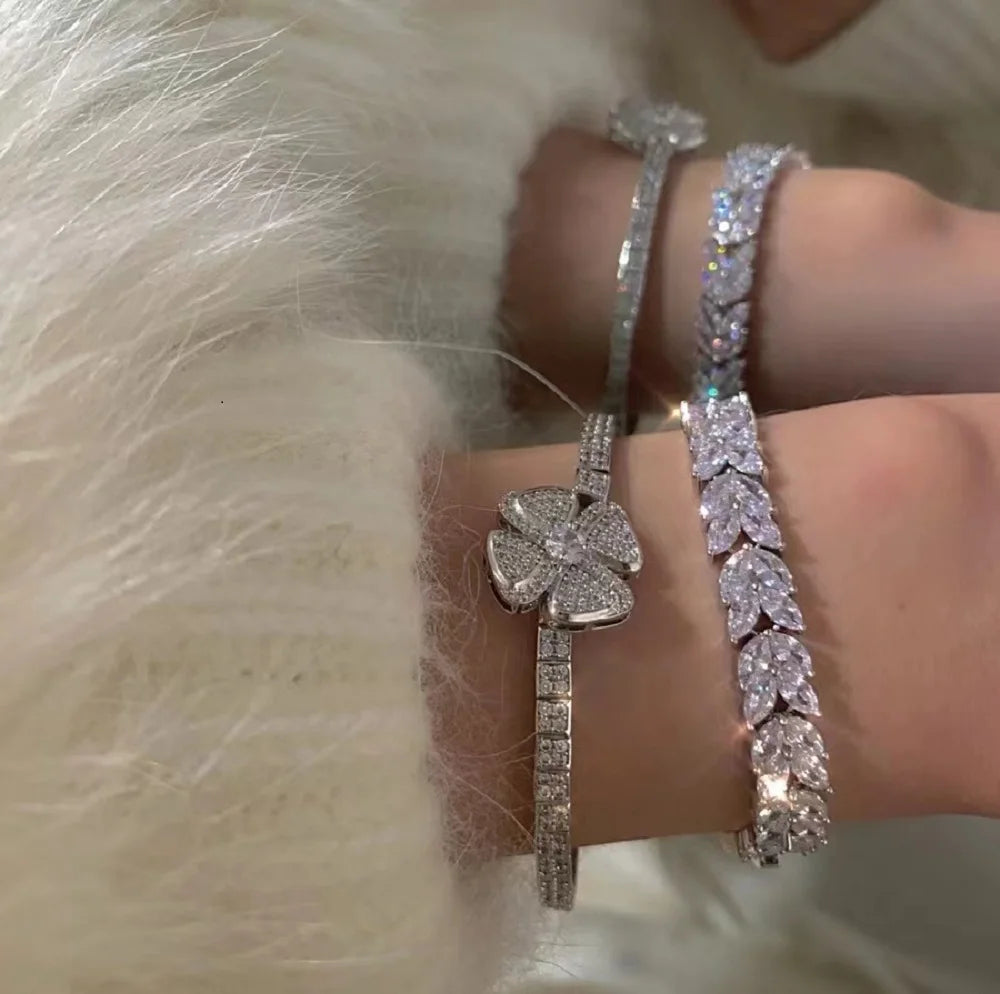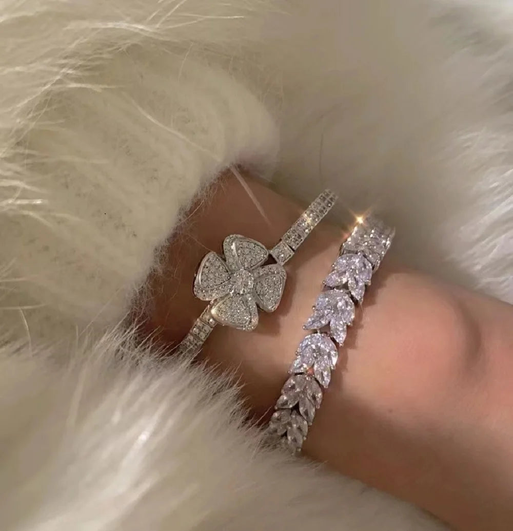 SPECIFICATIONSBracelets Type: Cuff BraceletBrand Name: BilincolorFine or Fashion: FashionGender: WomenMaterial: cubic zirconiaMetals Type: Copper AlloyModel Number: bracOrigin: Mainland ChinaPlating: SILVER PLATEDSetting Type: Tension SettingShape\pattern: PlantStyle: Classic