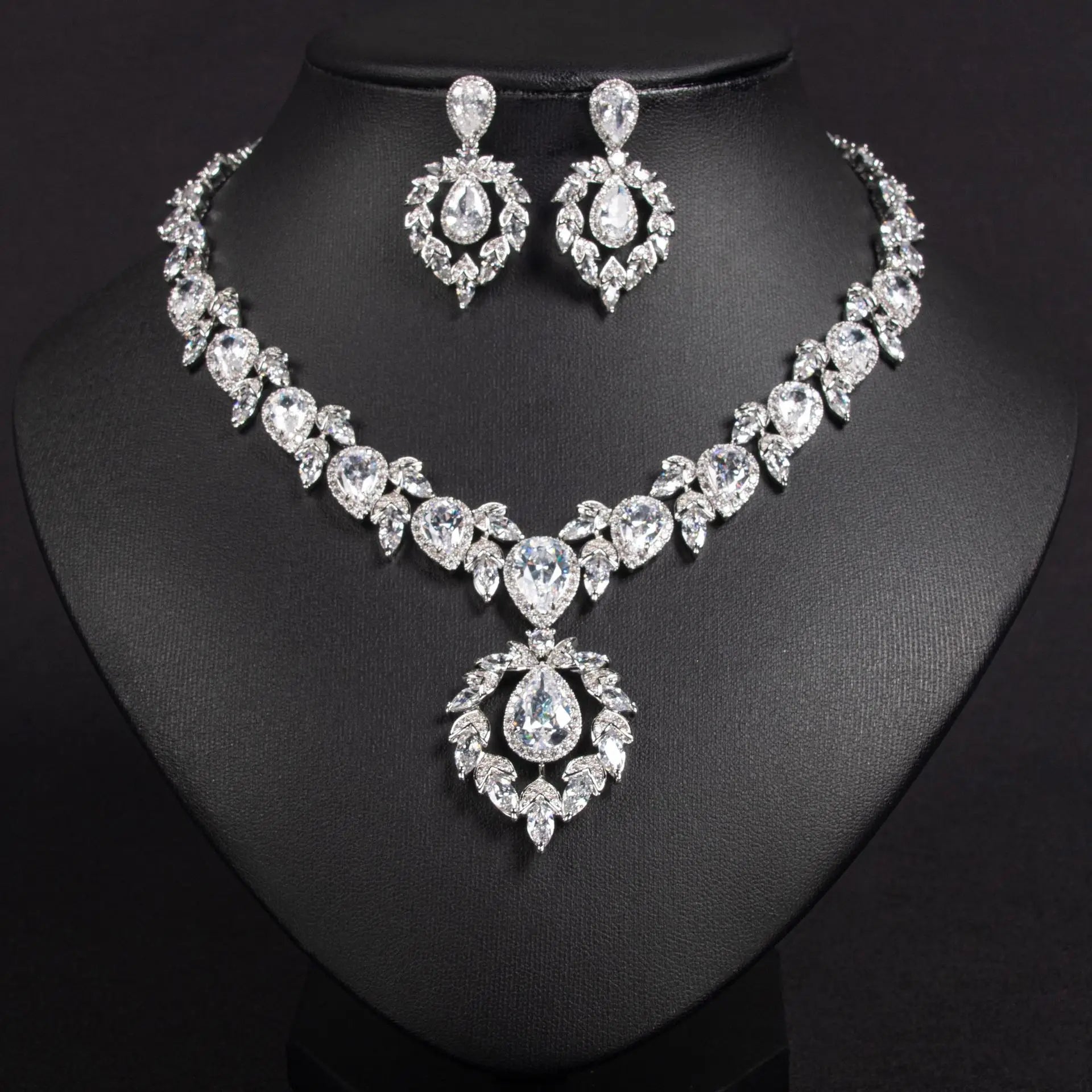 Bridal Dress Jewelry Set with Zircon Water Drop Inlaid Multi Color Matching Middle Eastern Jewelry Necklace Earrings Jewelry
