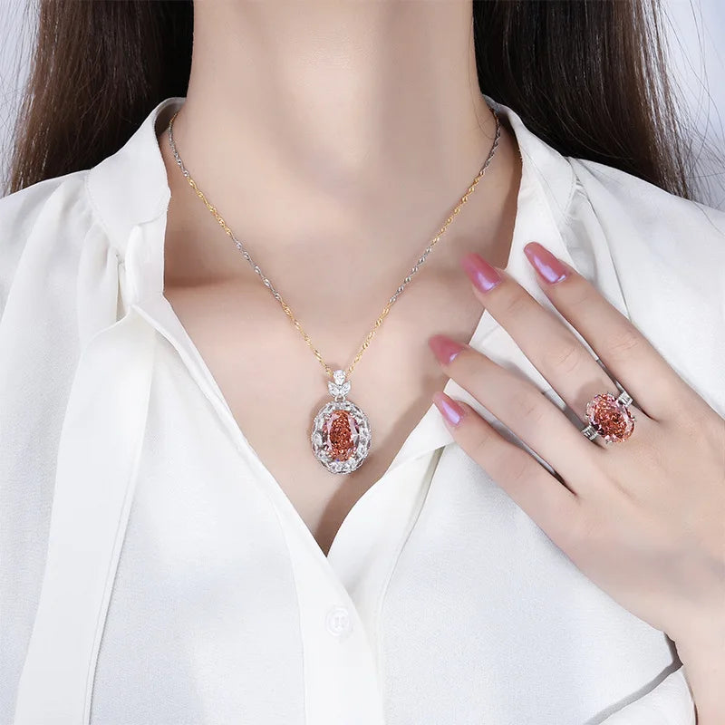 Champagne High Carbon Diamond Luxury Designer Jewelry Set For Women 925 Sterling Silver Pendant Necklace Ring Engagement Wedding