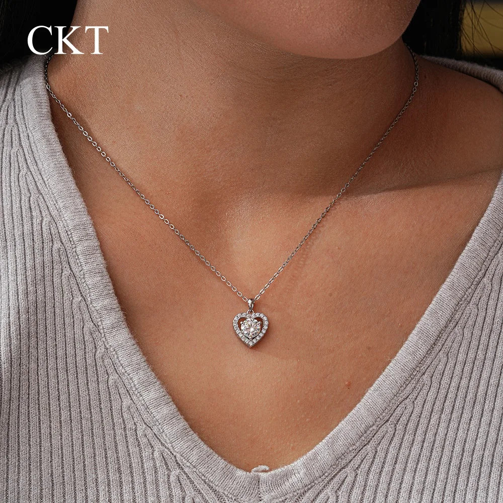 CKT 18k White Gold 1ct Diamond Moissanite Star & Moon Celestial Heart Pendant, Dainty Platinum Pt950 Necklace Fine Jewelry