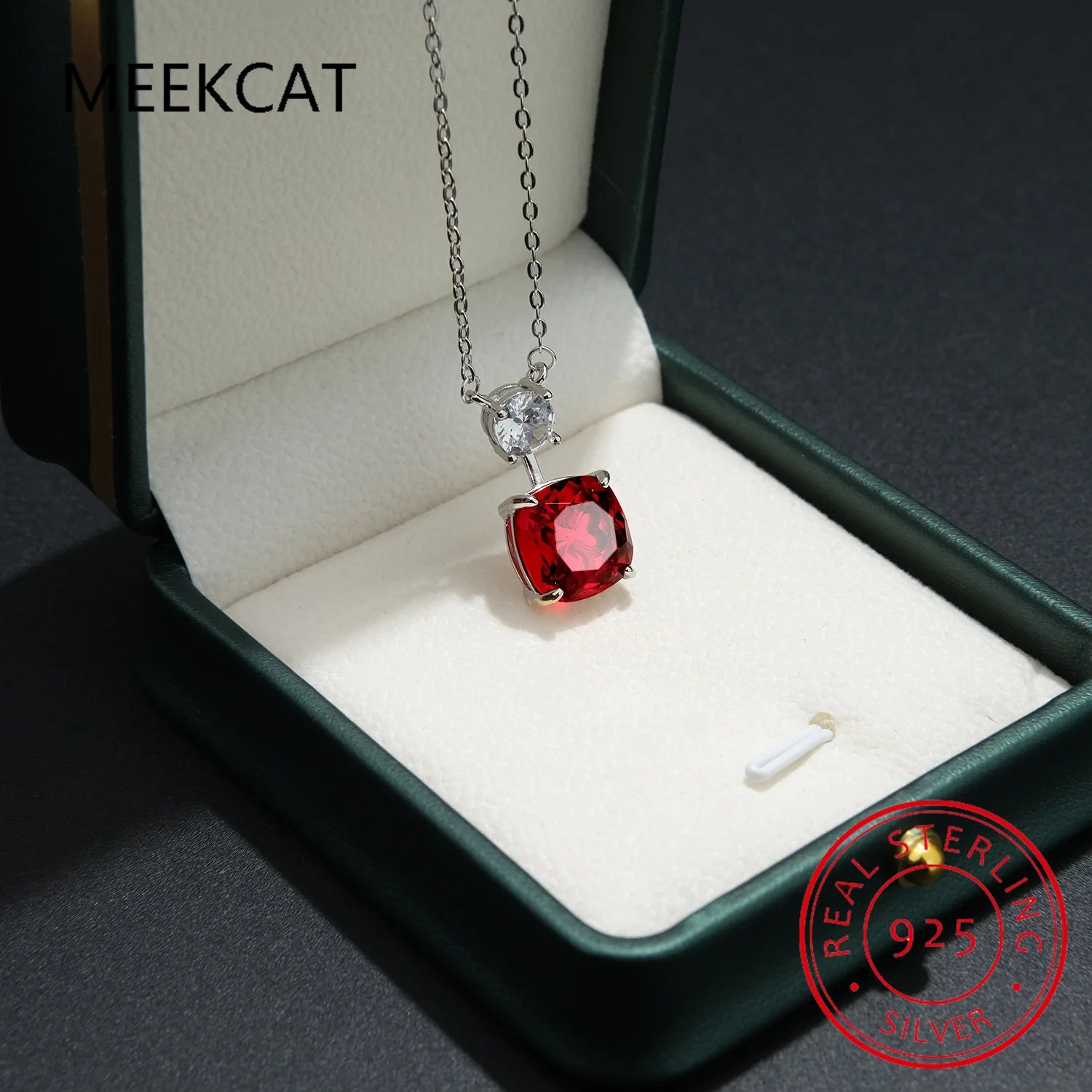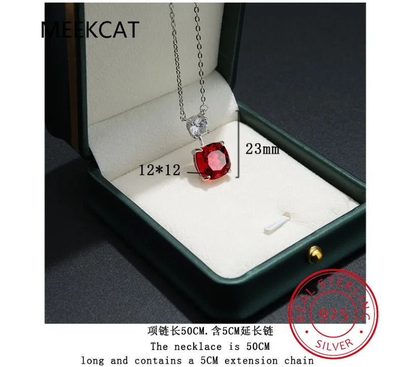 Cushion Cut Red Natural Garnet Ruby 925 Sterling Silver Square Pendant Necklace for Women Gemstone Jewelry Colar de Prata