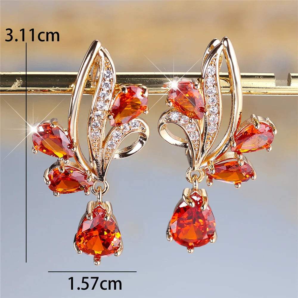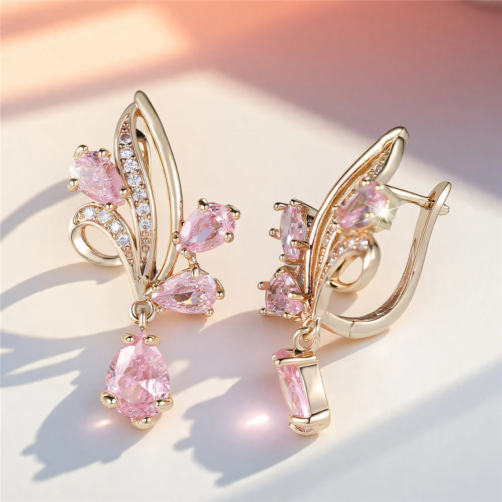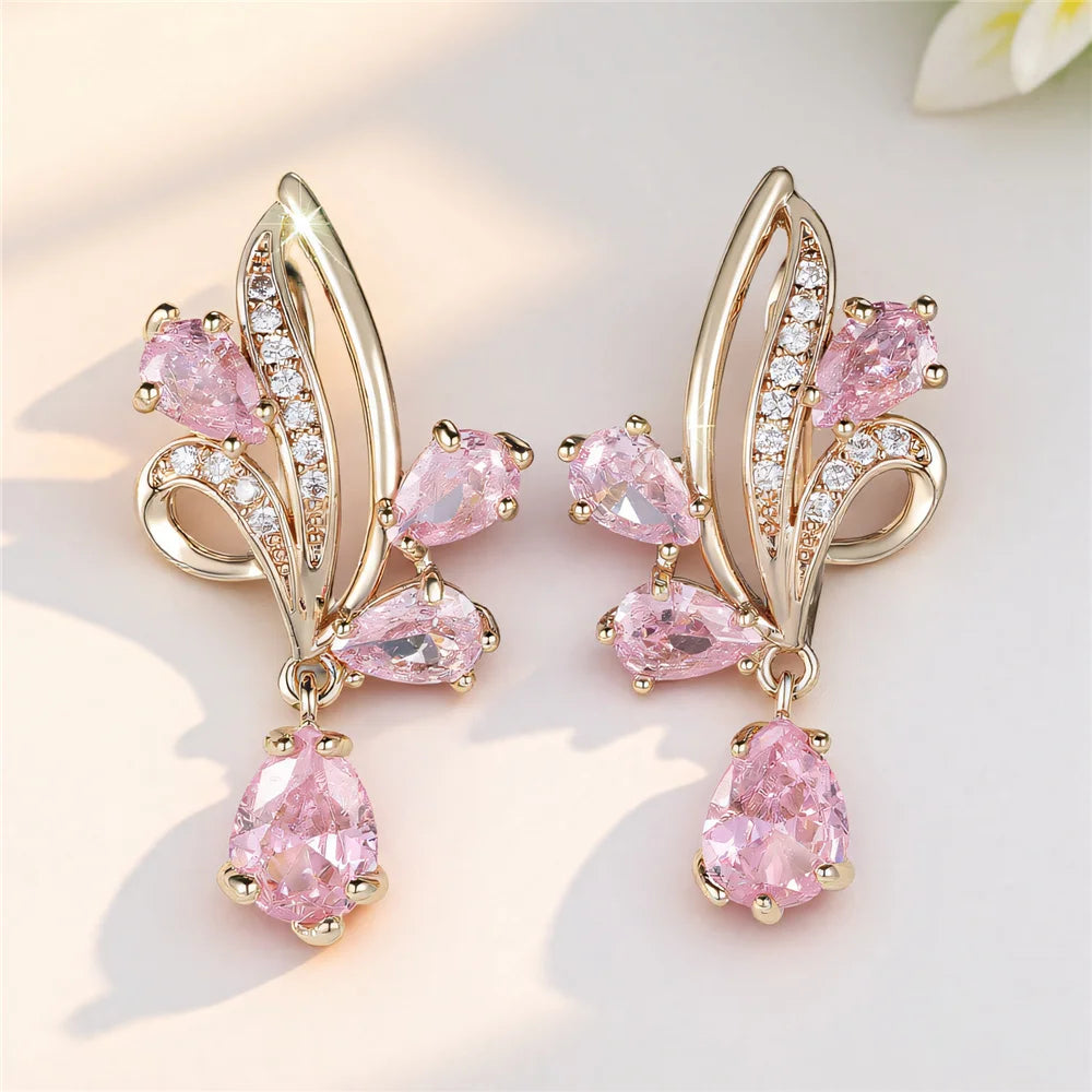Cute Female White Pink Red Zircon Stone Hoop Earrings