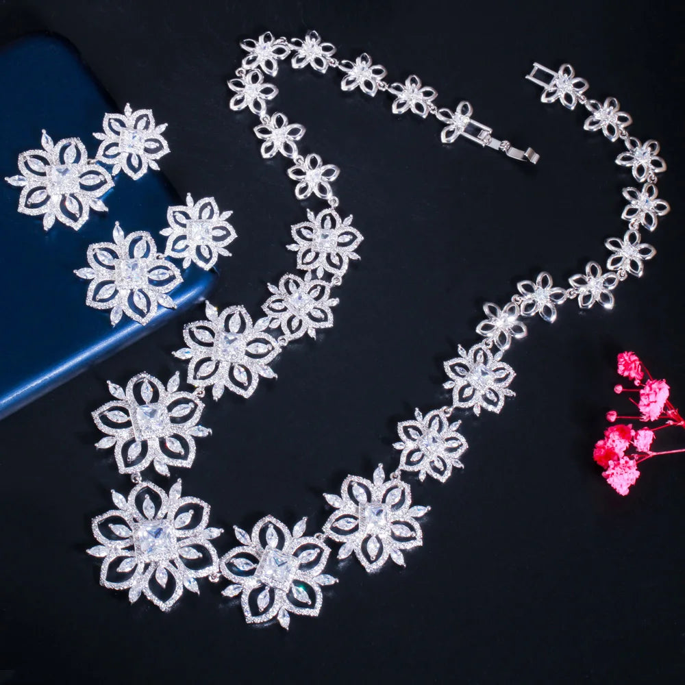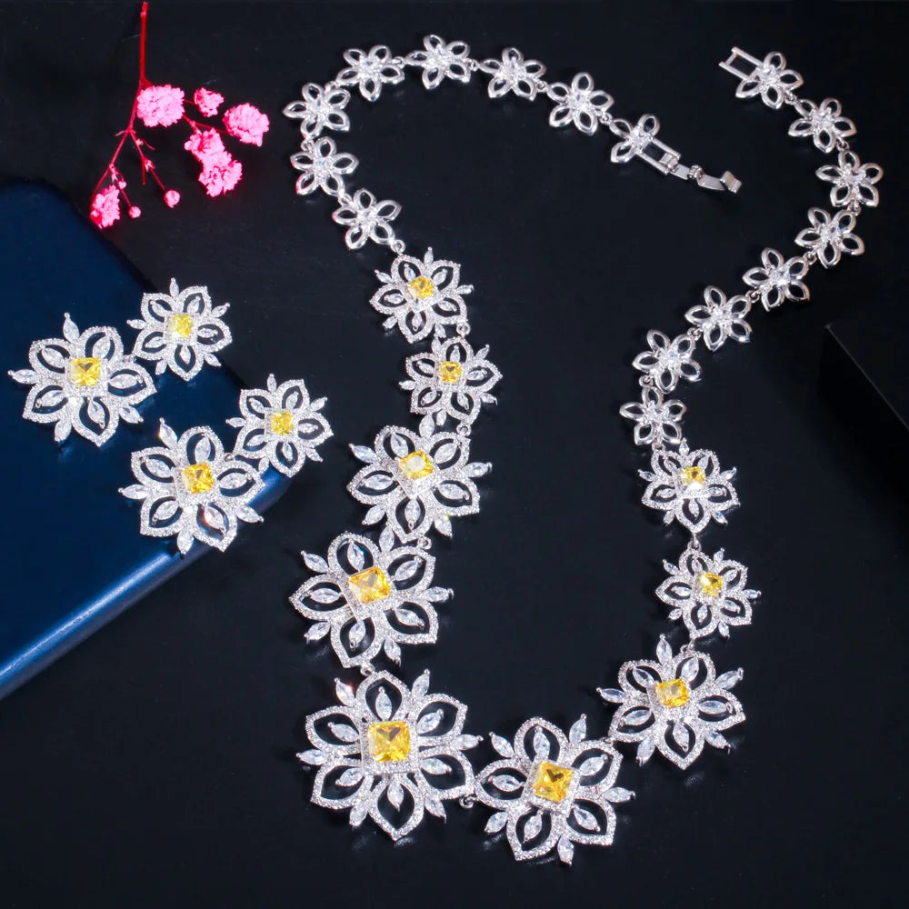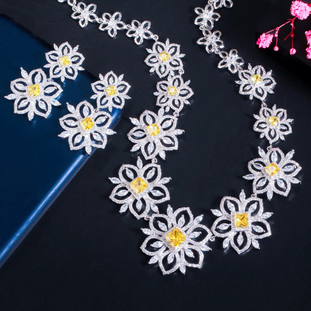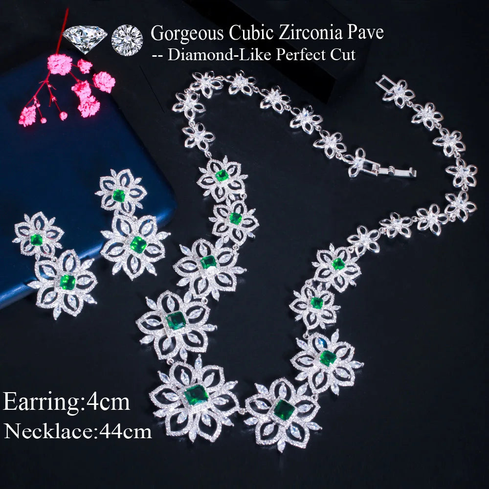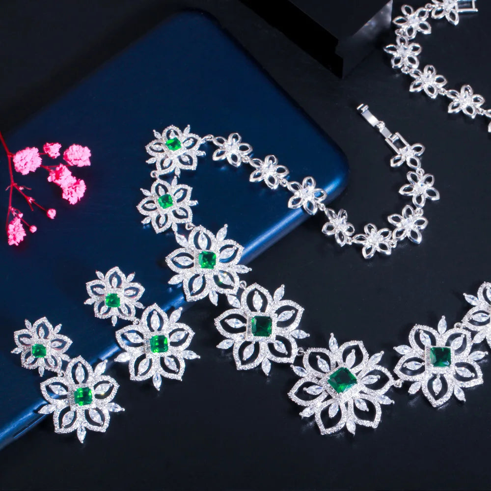 CWWZircons Beautiful Flower Green Cubic Zirconia Bridal Wedding Jewelry Set for Brides Evening Dancing Party Accessories T513