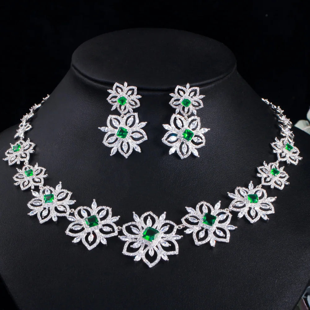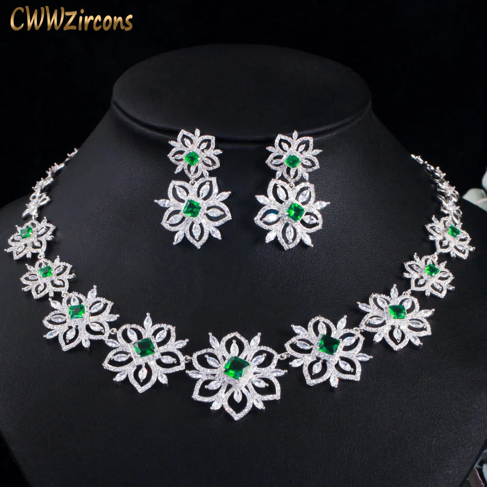 SPECIFICATIONSBrand Name: cwwzirconsDesign From: Famous CWWZircons Brand JewelryEarrings Size: 4 cmFine or Fashion: FashionFit For: Wedding Bridal Jewelry Set GiftGender: WomenIncluded Additional Item Description: 1 pair earrings , 1 Pcs necklaceItem Type: jewelry sets,Green Jewelry Set / Evening Party Wedding JewelryJewelry Sets Type: Bridal Jewelry SetsJewelry Shape: Flower DropMain Stone...