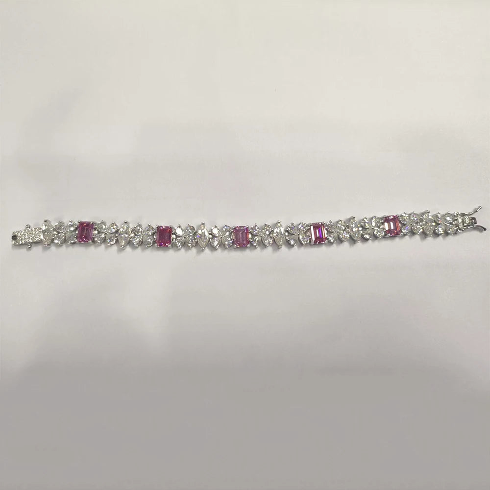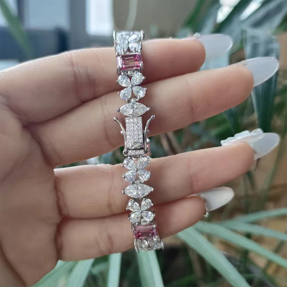 SPECIFICATIONSBracelets Type: Charm BraceletsBrand Name: ROBUKFCertificate: YesCertificate Number: MB-094Certificate Type: NGSTCDiameter: *Emerald Cut Moissanite Size: 5*7mm(1ct) Pink MoissaniteFine or Fashion: FineGender: WomenHign-concerned Chemical: NoneItem Type: BRACELETSItem Weight: *Main Stone: MoissaniteMarquise Cut Moissanite Size: 4*8mm(0.5ct) MoissaniteMetal Stamp: 925,SterlingMetals Type: SilverModel Number: Moissanite Bracelet MB-094Moissanite Clarity Grade: VVS1Moissanite Color Grade: D ColorMoissanite...