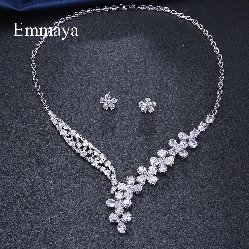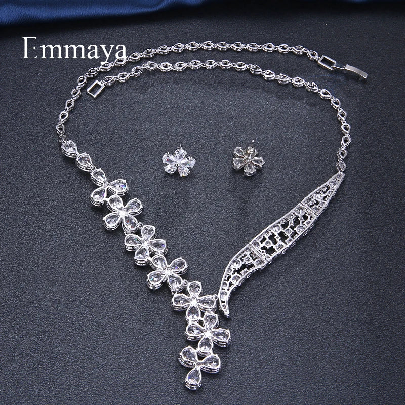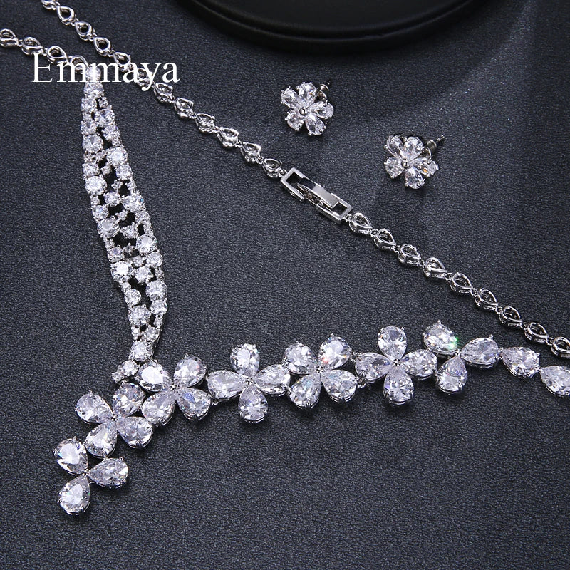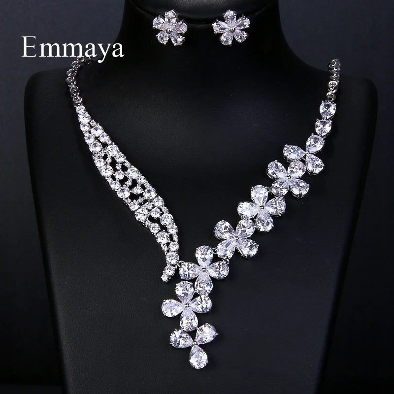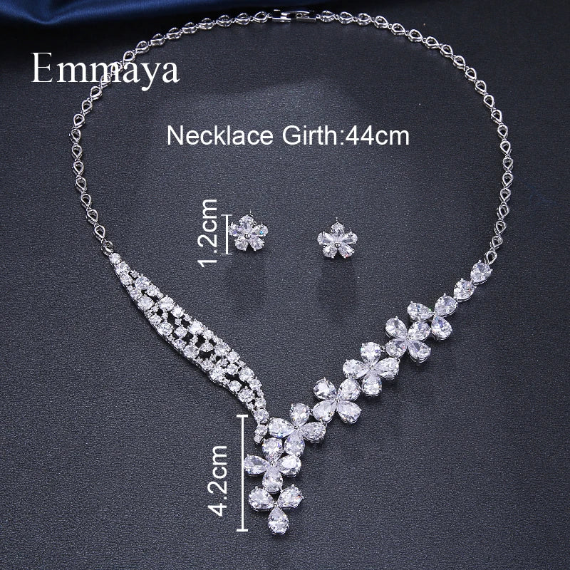 SPECIFICATIONSBrand Name: EmmayaFine or Fashion: FashionGender: WomenIncluded Additional Item Description: 1 Pair Earrings + 1 Piece NecklaceItem Type: jewelry setsJewelry Sets Type: Bridal Jewelry SetsMaterial: cubic zirconiaMetals Type: CopperModel Number: QT-161Occasion: WeddingShape\pattern: PlantStyle: TRENDYis_customized: Yes