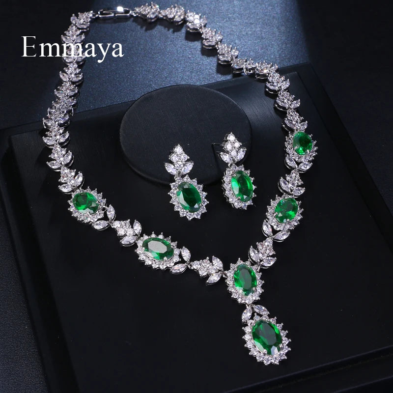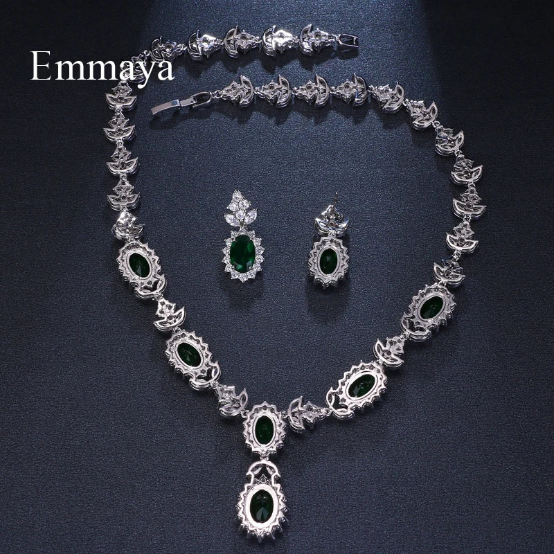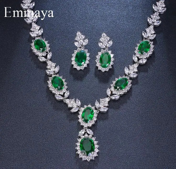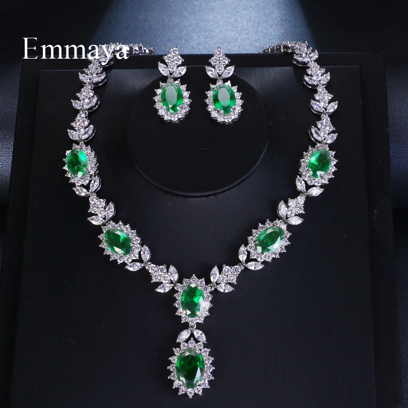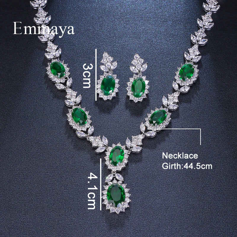 Emmaya Brand Fashion Luxury Cubic Zirconia Bridal Jewelry Sets Green Oval Crystal Rhinestone Party Wedding Jewelry Necklace Sets