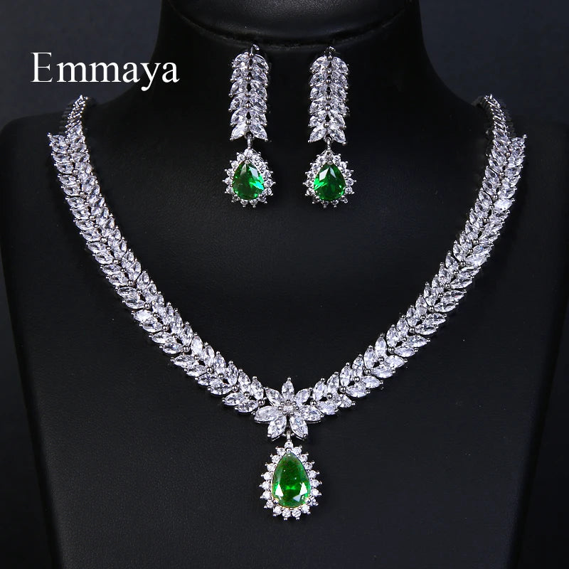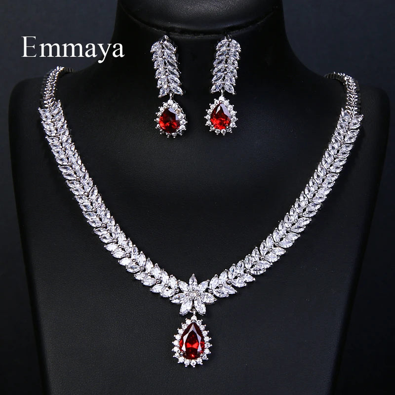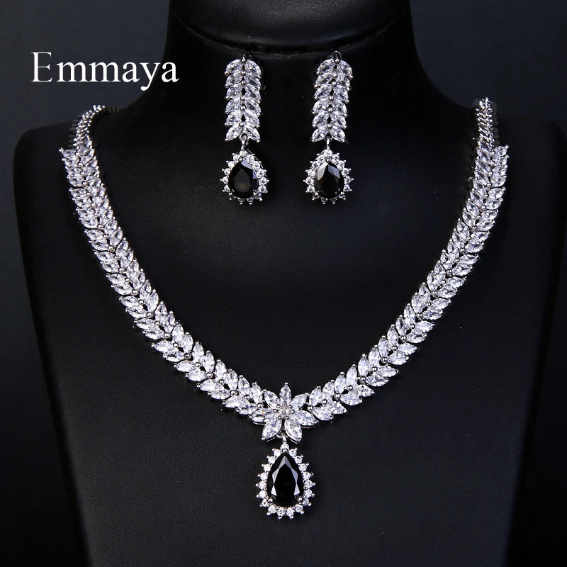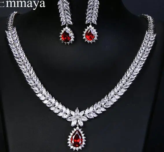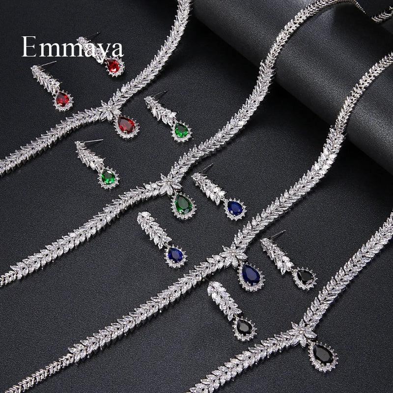 Emmaya Luxury AAA Cubic Zircon 4 Colors Water Drop Wedding Earrings Necklace For Women Bridal Jewelry Sets Party Accessories