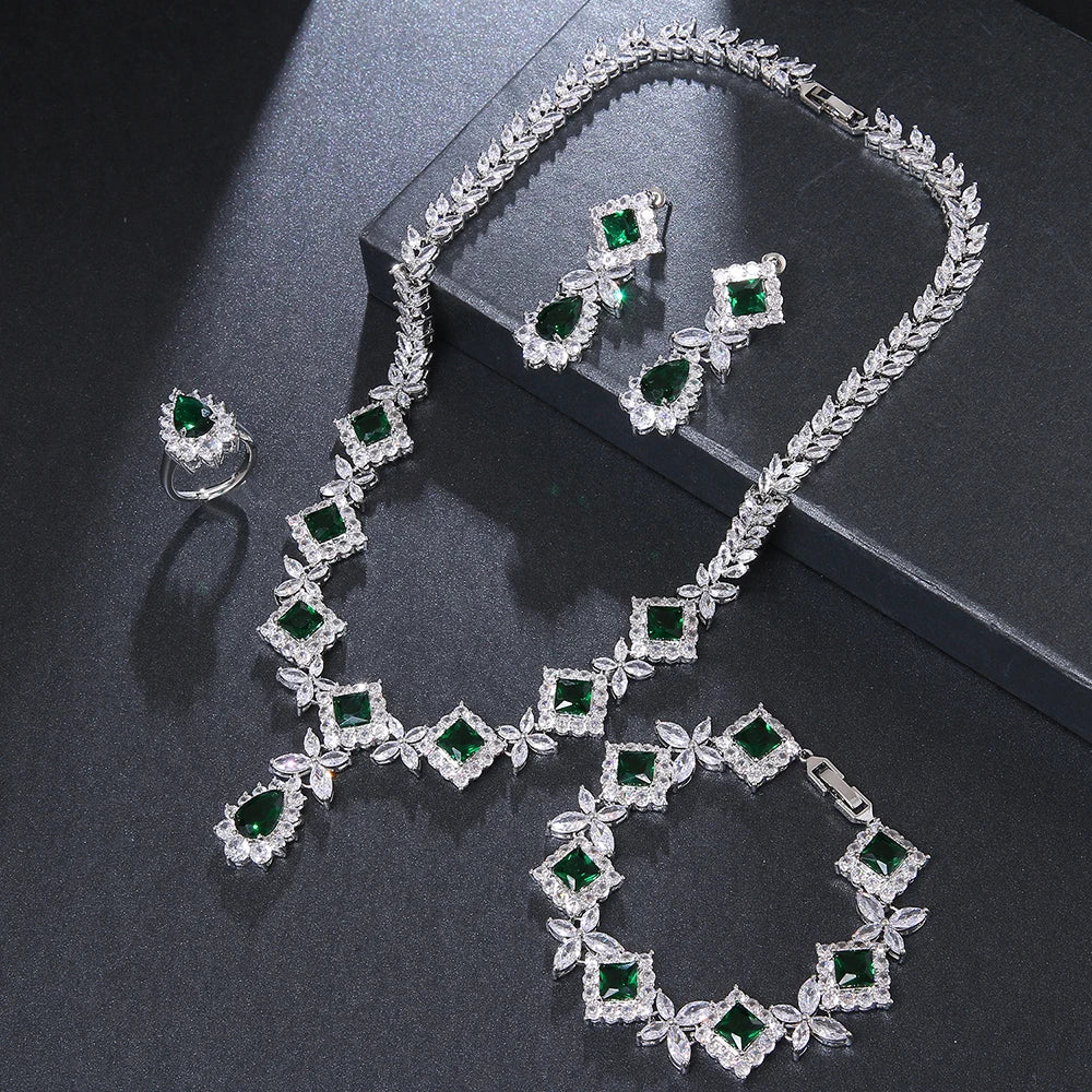 Emmaya Zircons Luxury Big Green CZ Women Wedding Costume Jewellery Necklace 4 pcs African Dubai Bridal Party Jewelry Sets