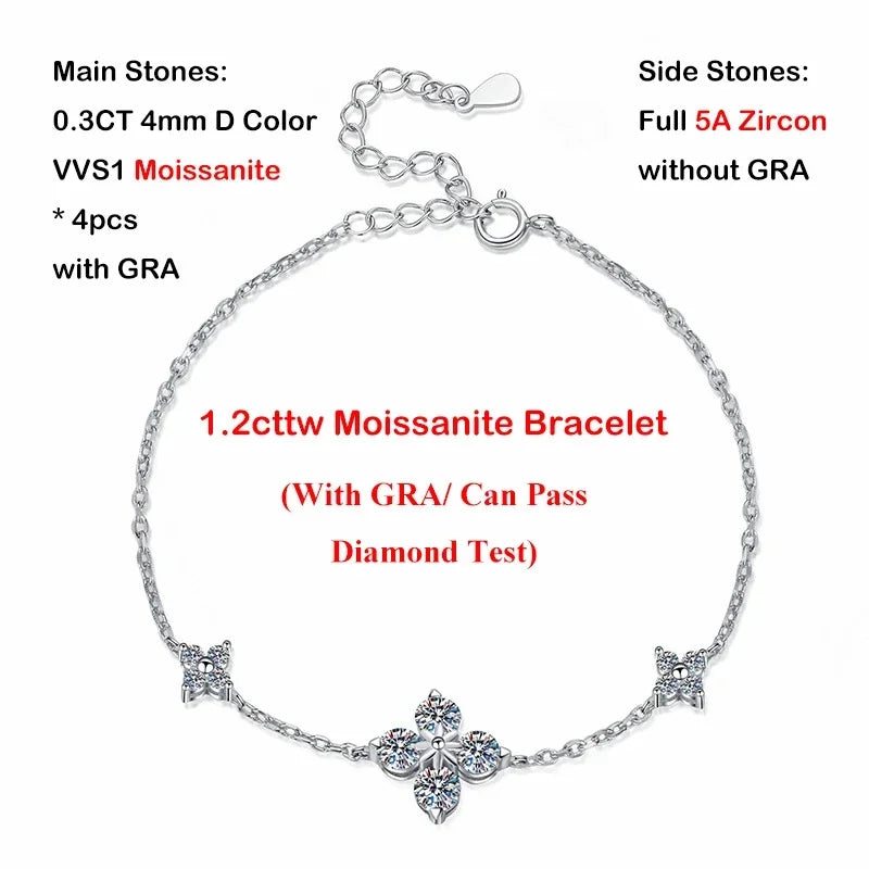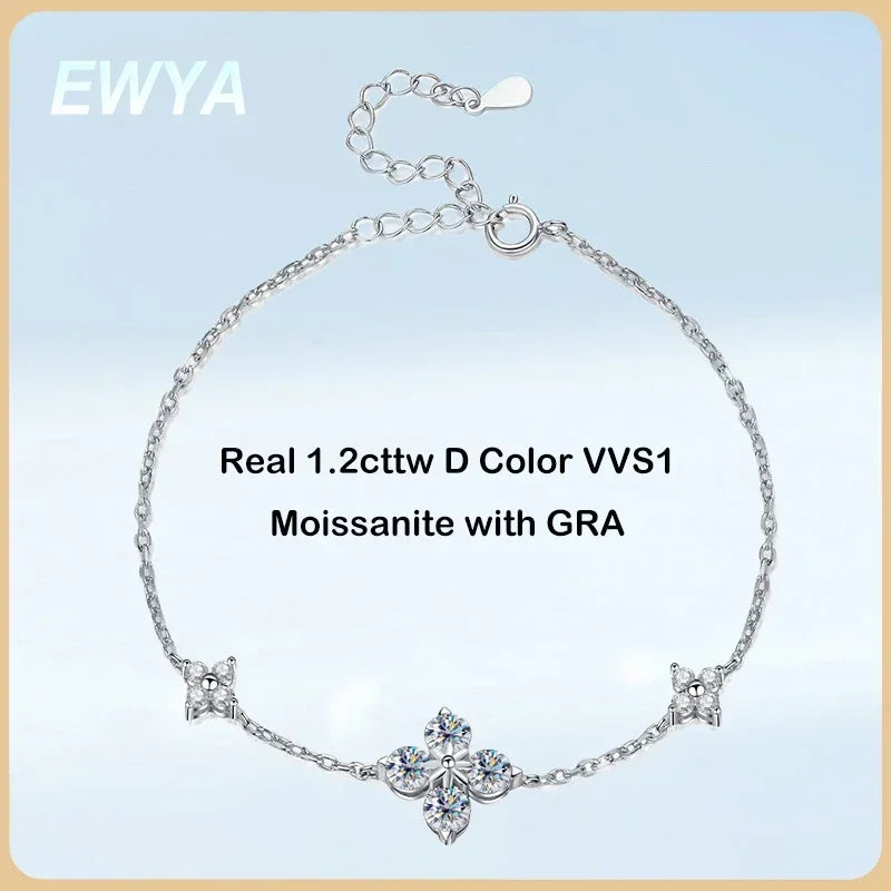 EWYA Real GRA Certified 1.2cttw D Color Moissanite Bracelet