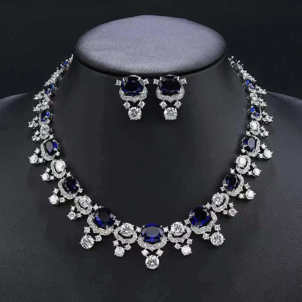 Exquisite luxury women's jewellery zirconia necklace earrings versatile charming set prom graduation party accessories M-362