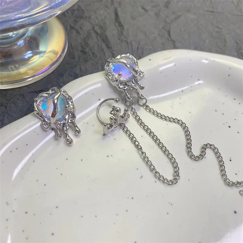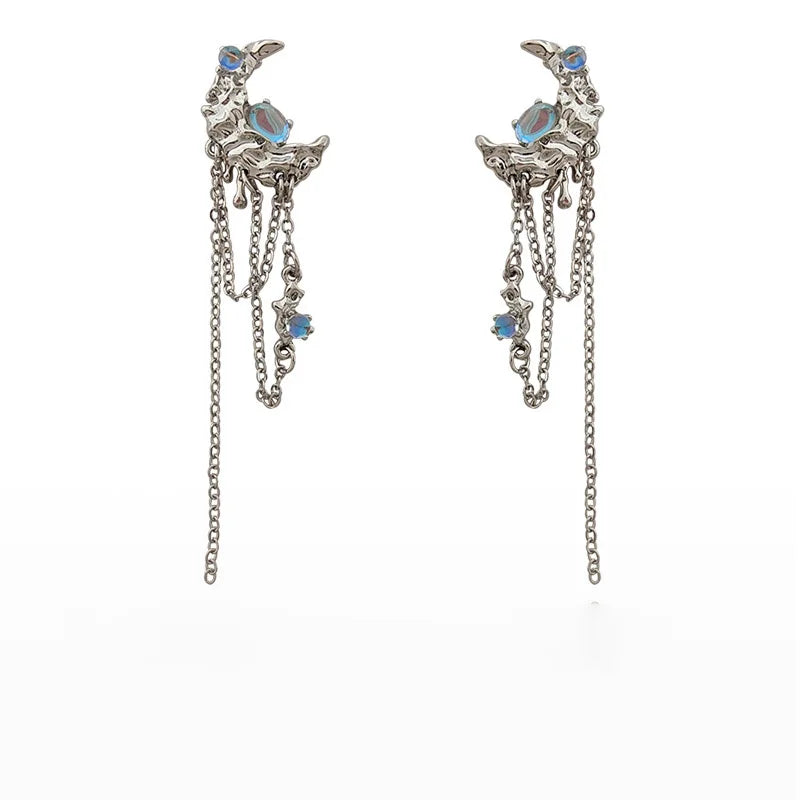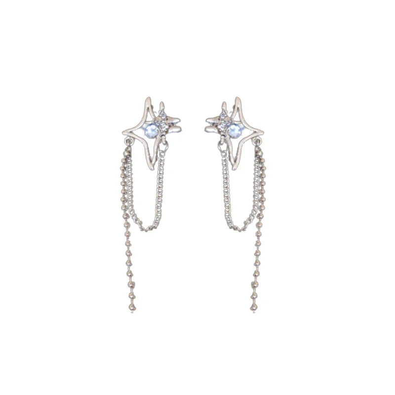 Fashion Korea Laser Stone Long Tassel Star Butterfly Earrings
