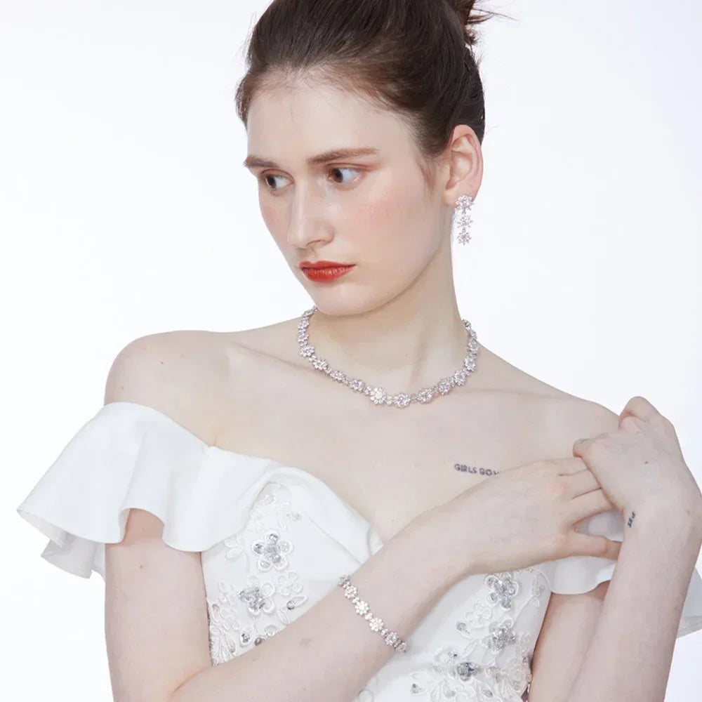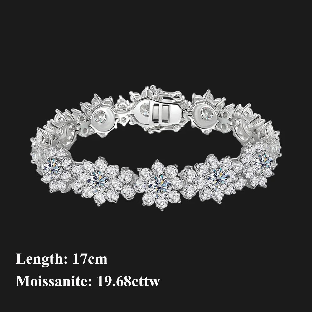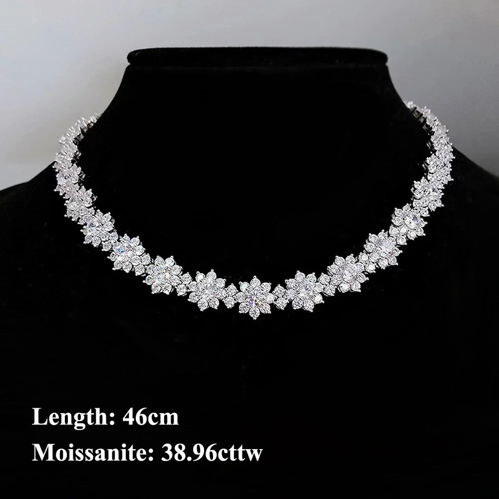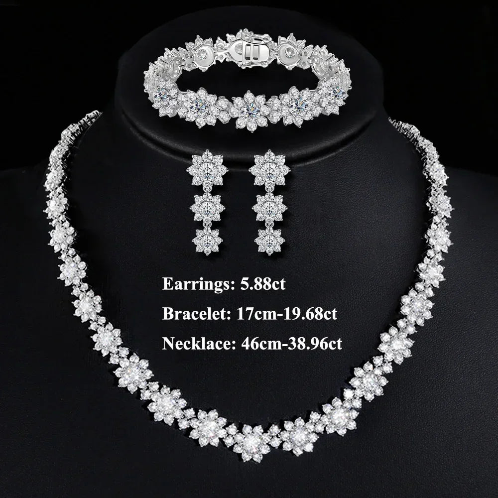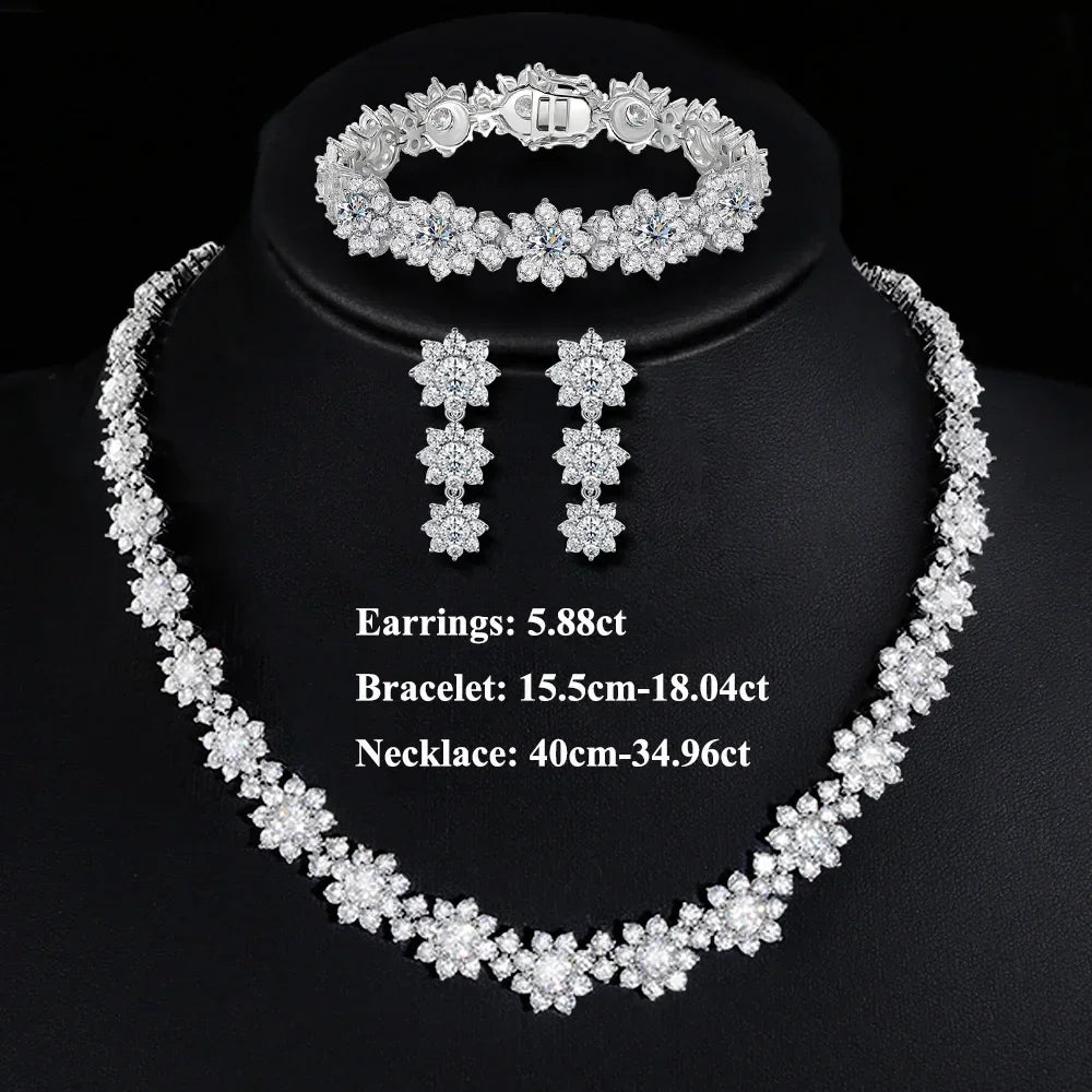 FEOBUR Full Moissanite Diamond Jewelry Set for Women 925 Sterling Silver Luxury Sunflower Necklace Bangle Bridal Wedding Sets