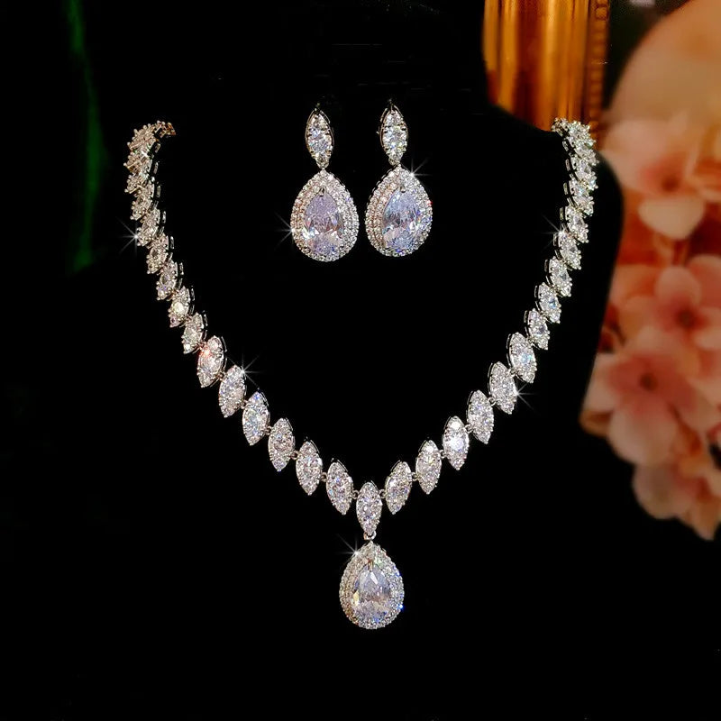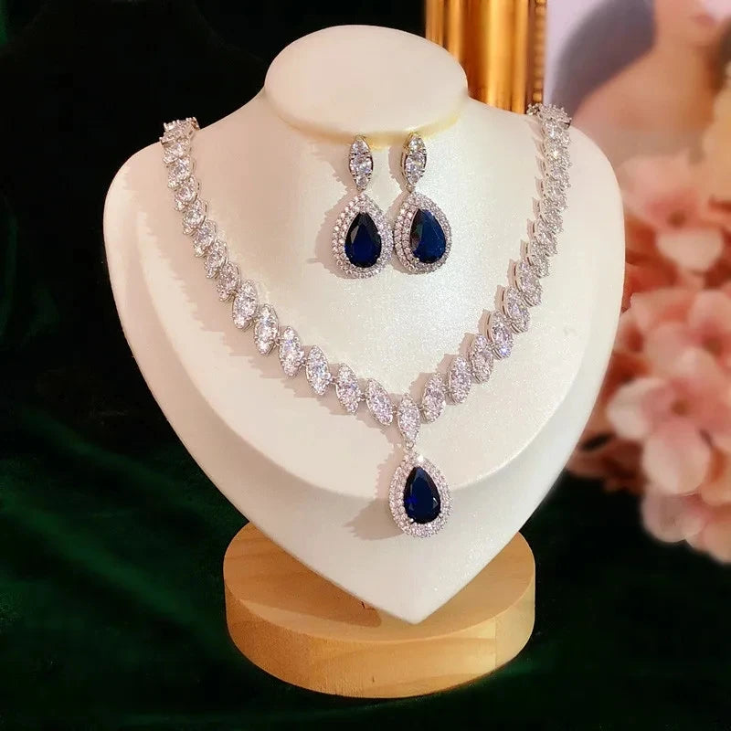 Fine Jewelry Sets For Women Water Vintage Drop Cubic Zirconia Created Gemstone Necklaces Drop Earring Bridal Wedding Bijoux