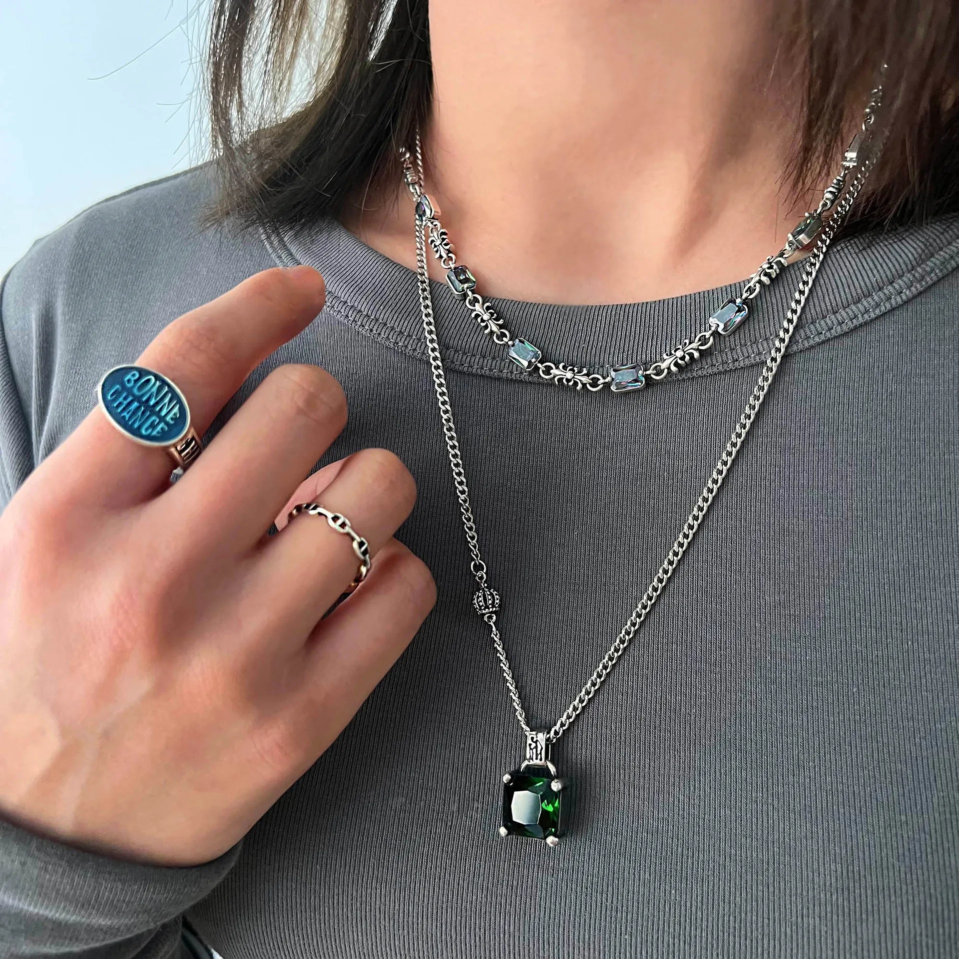 Foydjew Retro Thai Silver Crown Green Zircon Necklaces For Women 2022 Trend Brand Pendant Luxury Temperament Fashion Jewelry