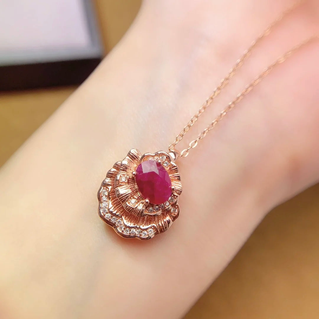 FS 6*8mm Natural Ruby Pendant Necklace Real S925 Sterling Silver Fine Charm Wedding Jewelry for Women Certificate MeiBaPJ