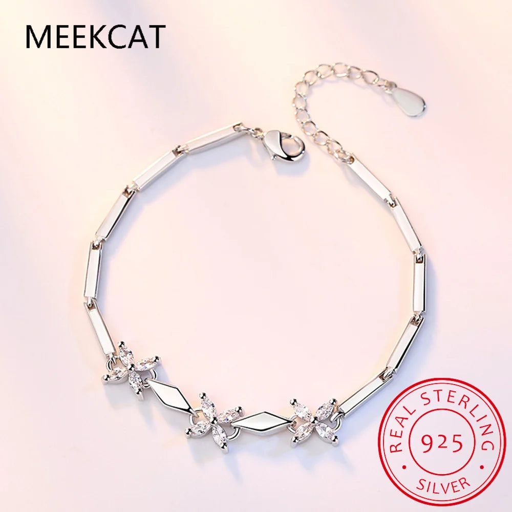 SPECIFICATIONSBracelets Type: Chain & Link BraceletsBrand Name: MEEKCATCertificate: NoCertificate Type: GDTCDrop shipping: YesEnvironmental Standard: Allergy free, Lead, Nickel, Cadmium freeFine or Fashion: FineGender: WomenHign-concerned Chemical: NoneItem Type: BRACELETSItem Weight: 4gLength: 16+4CMMain Stone: ZirconMetals Type: SilverOccasion: party,Wedding,Engagement,Party,AnniversaryOrigin: Mainland ChinaShape\pattern: PlantSide Stone: CrystalStamp: S925Stone: Cubic ZirconiaStyle: Classicis Customized & Wholesale: Yes, Pls...