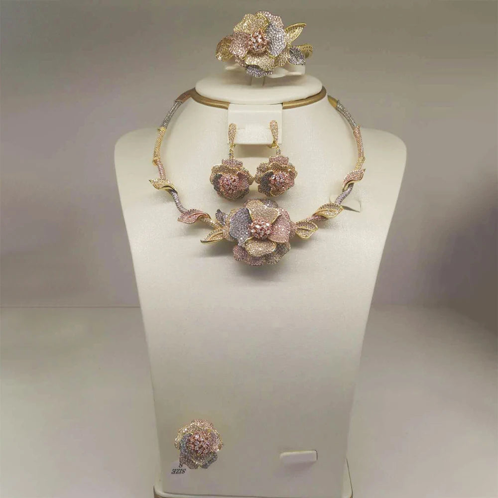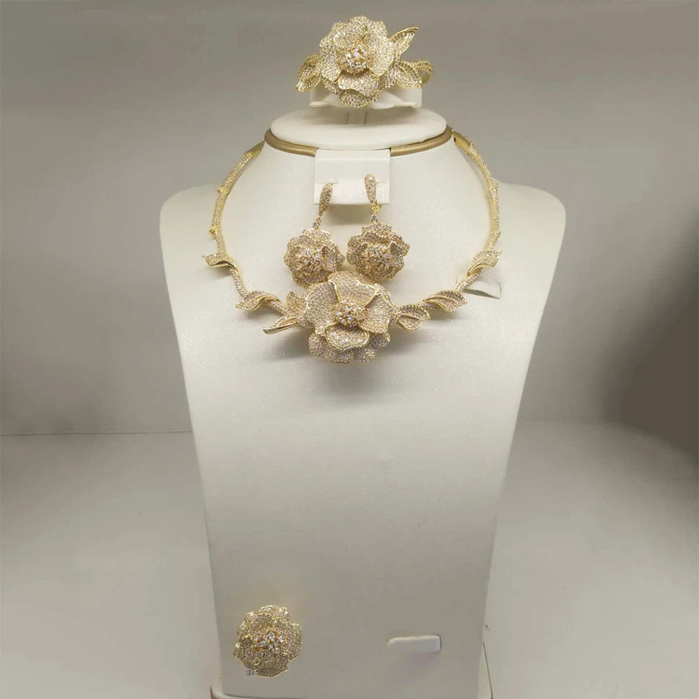 SPECIFICATIONSBrand Name: GODKIFine or Fashion: FashionGender: WomenHign-concerned Chemical: NoneIncluded Additional Item Description: Necklace Ring Bangle EarringItem Type: jewelry setsJewelry Sets Type: Necklace/Earrings/Ring/BraceletMaterial: cubic zirconiaMetals Type: CopperModel Number: T003Occasion: EngagementOrigin: Mainland ChinaShape\pattern: FlowerStyle: TRENDY