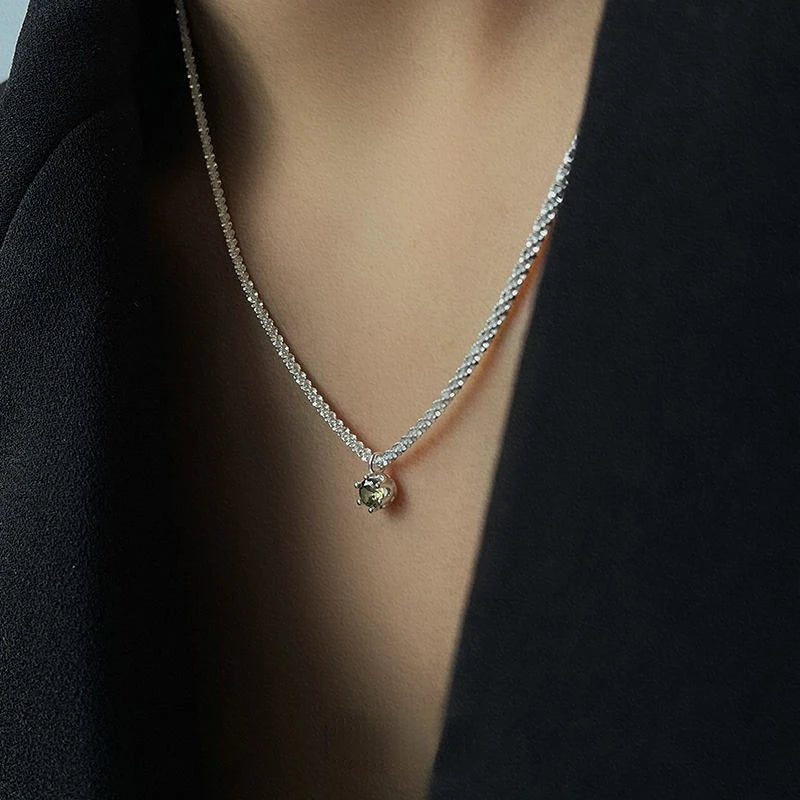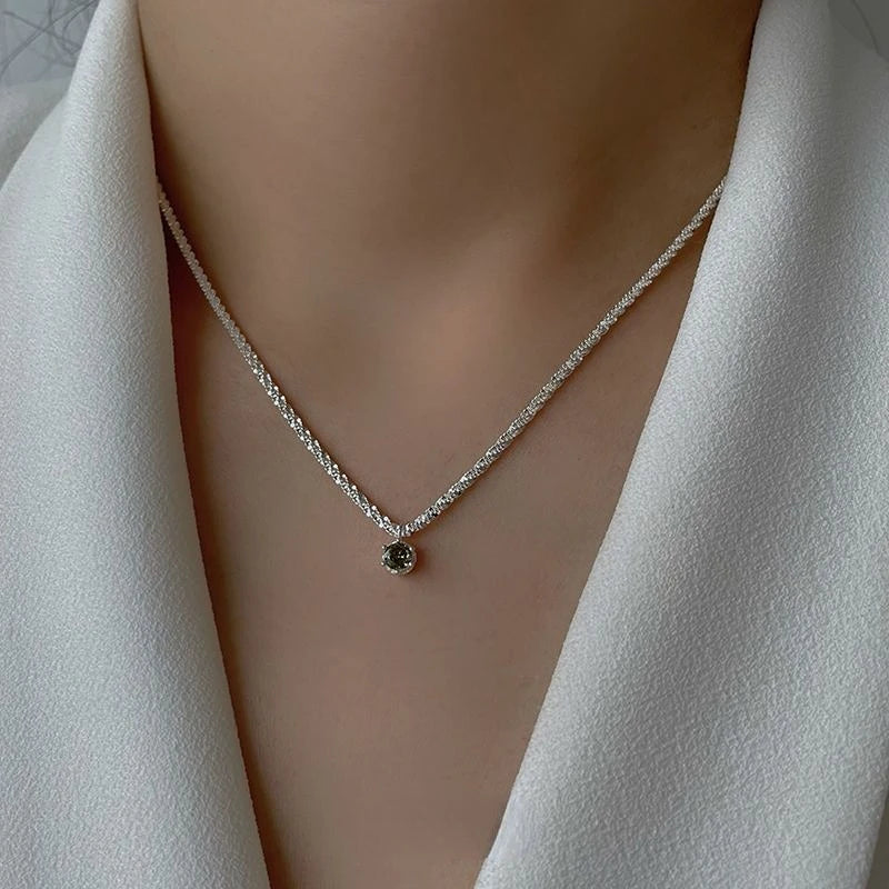 Green Zircon Sparkling 925 Silver Elegant Simple Light Luxury Clavicle Chain Necklace for Women