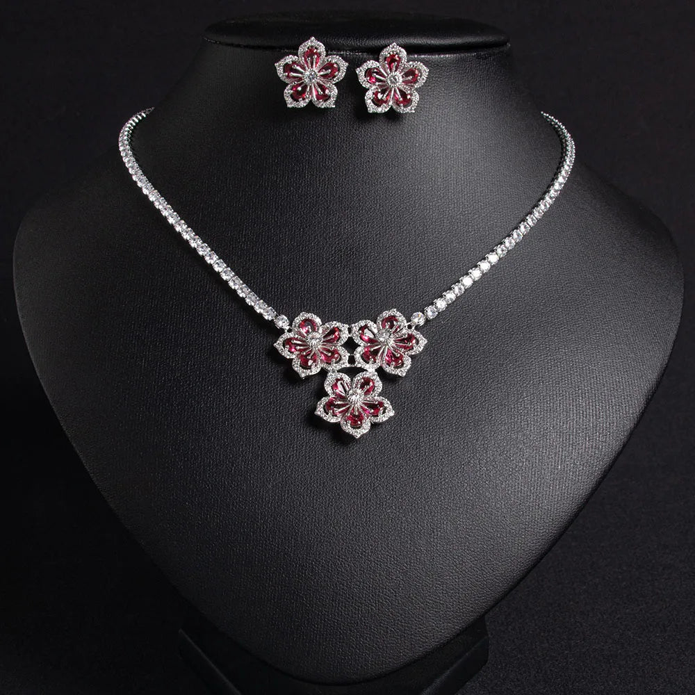 HIBRIDE French Fire Flower Necklace Earrings 2025 Gorgeous Women's Set Bridal Wedding Party Dress Holiday Gift Jewellery S-377