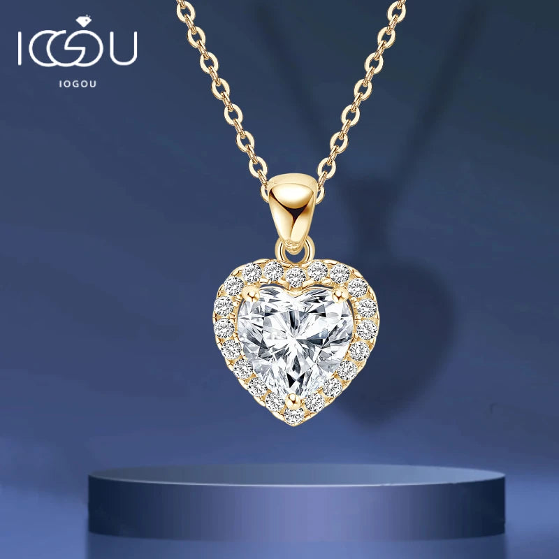 IOGOU 2.0carat Heart Shaped Moissanite Pendant Necklace for Women Girl Real 925 Silver Luxury Gift Wedding Jewelry Valentine Day