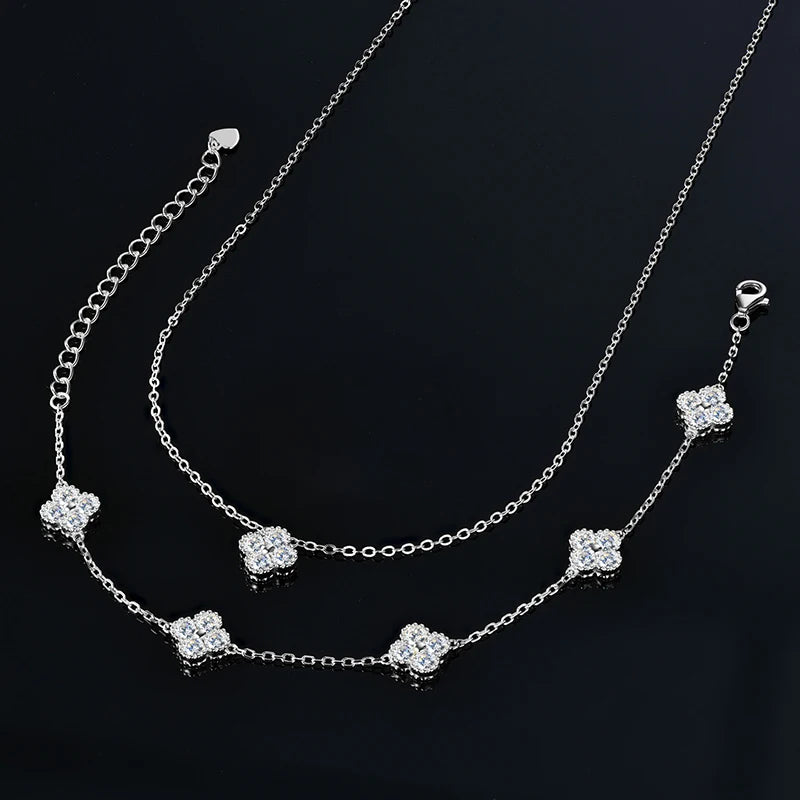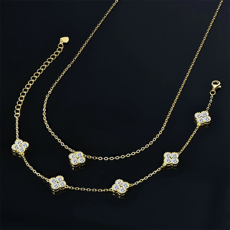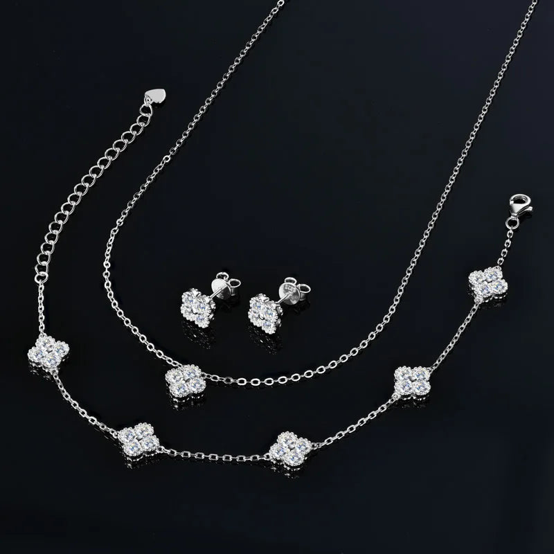 IOGOU 3 In 1 Clover Flower Pendant Necklace Earrings