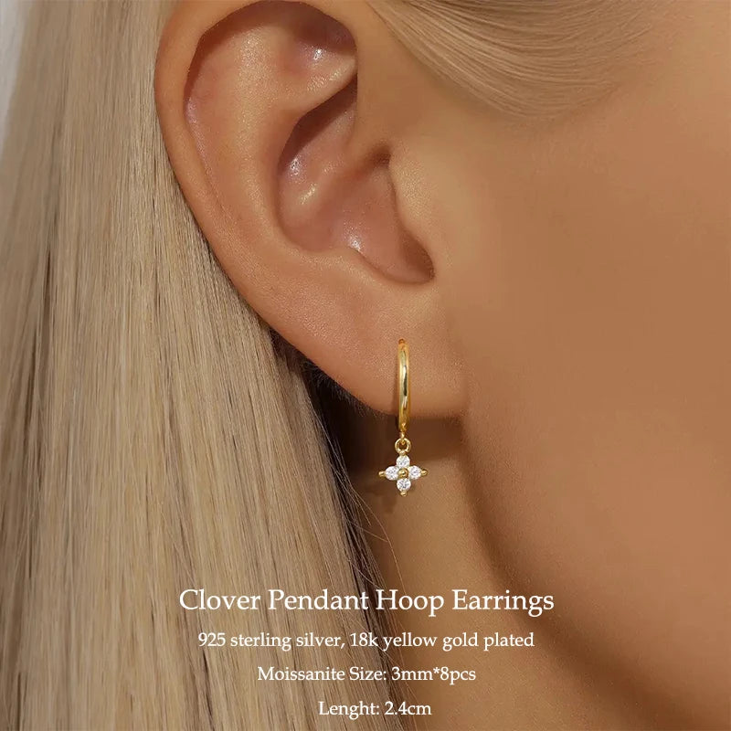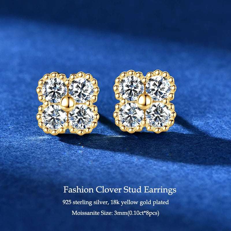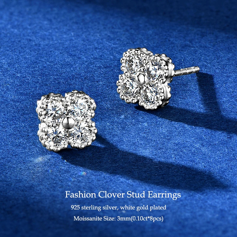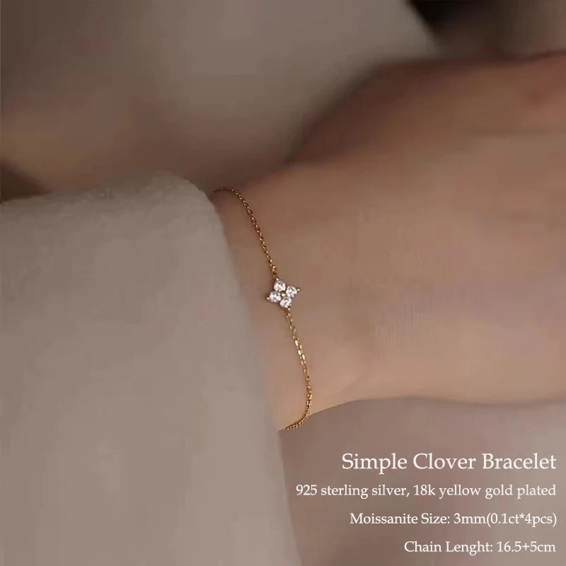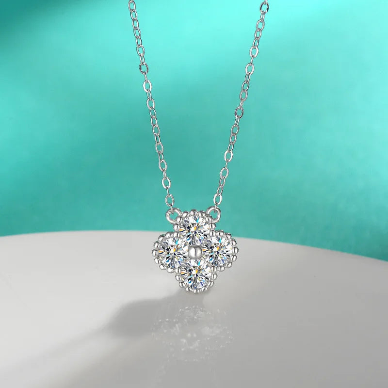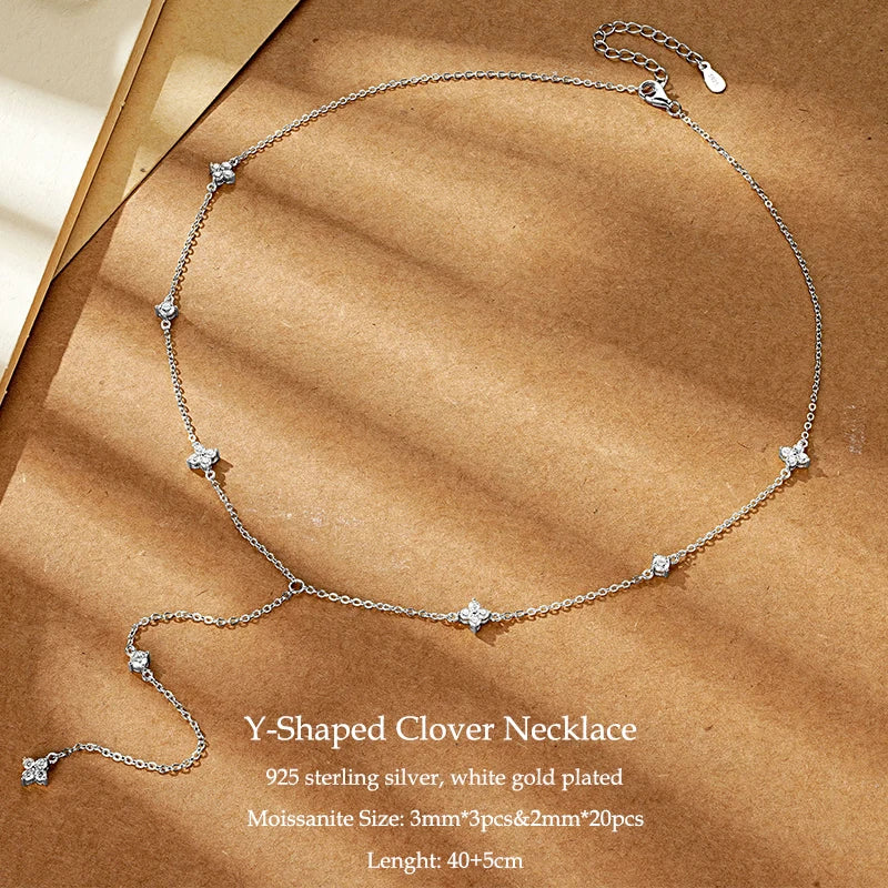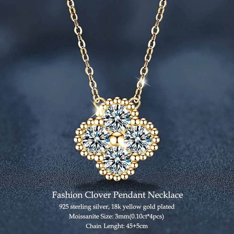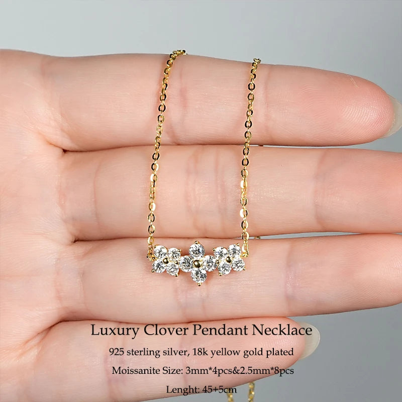 IOGOU Flower Clover Moissanite Pendant Necklace 925 Silver Clavicle Adjustable Chain for Women Girls Gift GRA Certified Jewelry