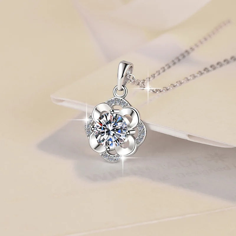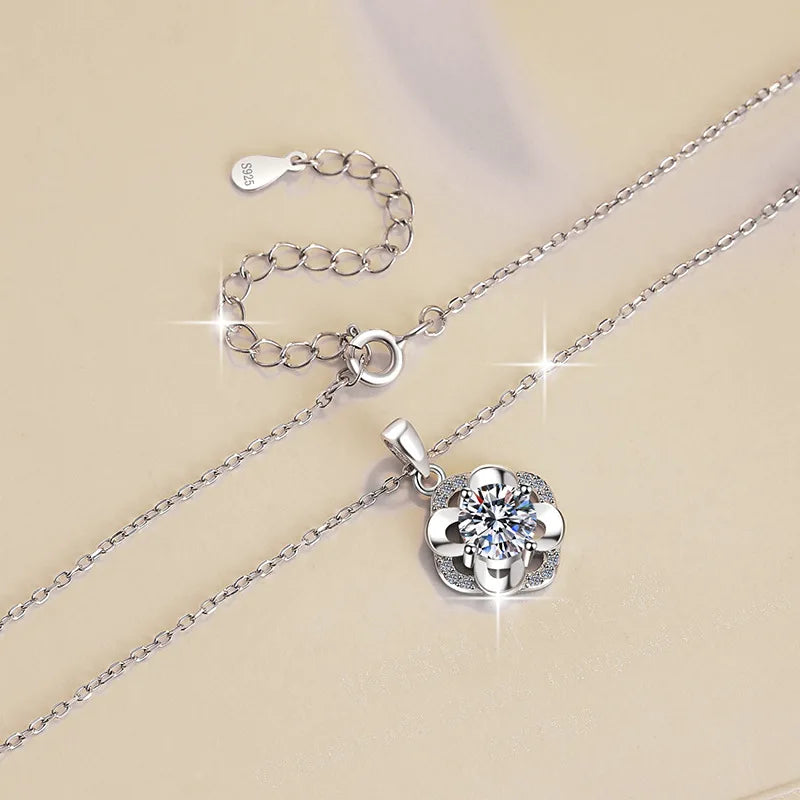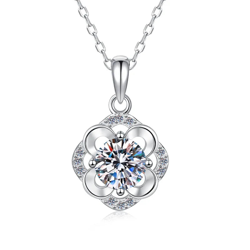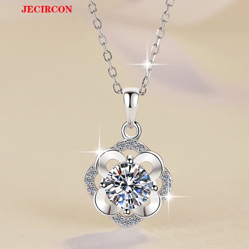 JECIRCON 1CT Moissanite Pendant Necklace for Women Light Luxury Fashionable 925 Sterling Silver Collarbone Chain Durable Jewelry