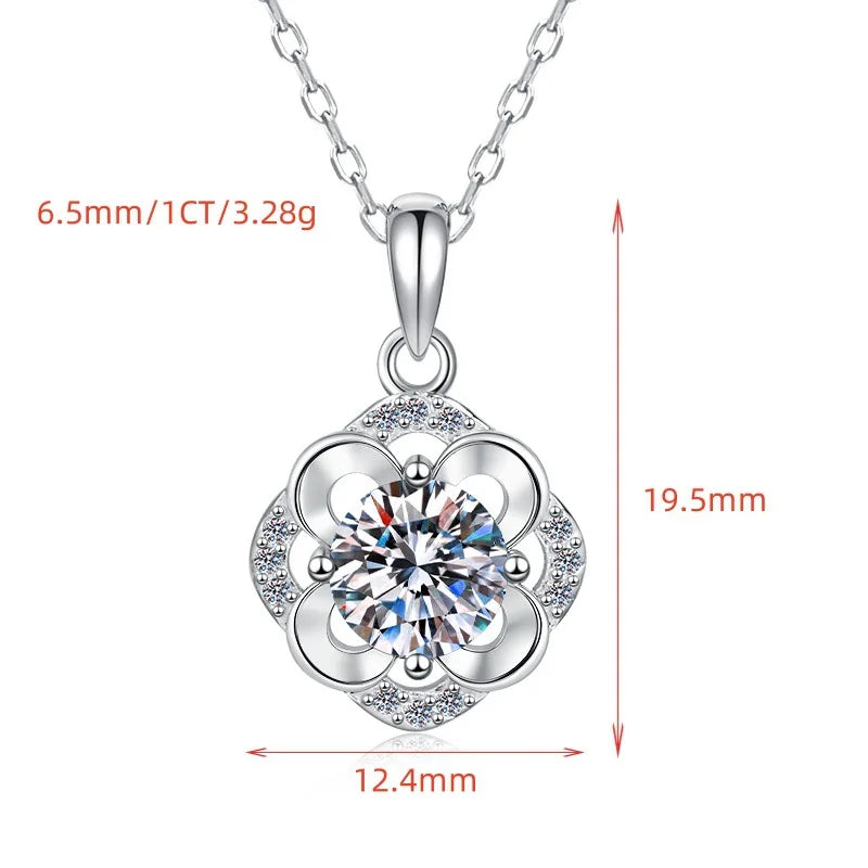 SPECIFICATIONSBrand Name: JECIRCONCertificate: YesCertificate Number: GRA CertificateCertificate Type: Third Party AppraisalChain Type: O-chainFine or Fashion: FineGender: WomenHign-concerned Chemical: NoneItem Type: NECKLACESItem Weight: 3.28gMain Stone: MoissaniteMetal Stamp: 925,SterlingMetals Type: SilverModel Number: RX565Necklace Type: Pendant NecklacesOccasion: partyOrigin: Mainland ChinaPendant Size: 12.4*19.5mmShape\pattern: FlowerStyle: TRENDYis_customized: No