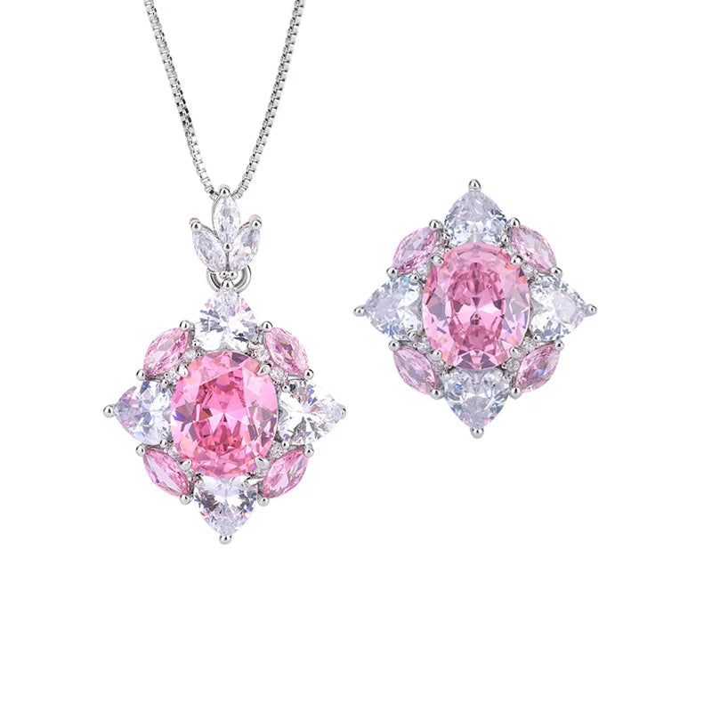 Jewelry Gold Plated Hot Selling Vintage Style Pink Diamond Pendant Ring Set Main Stone 10*12