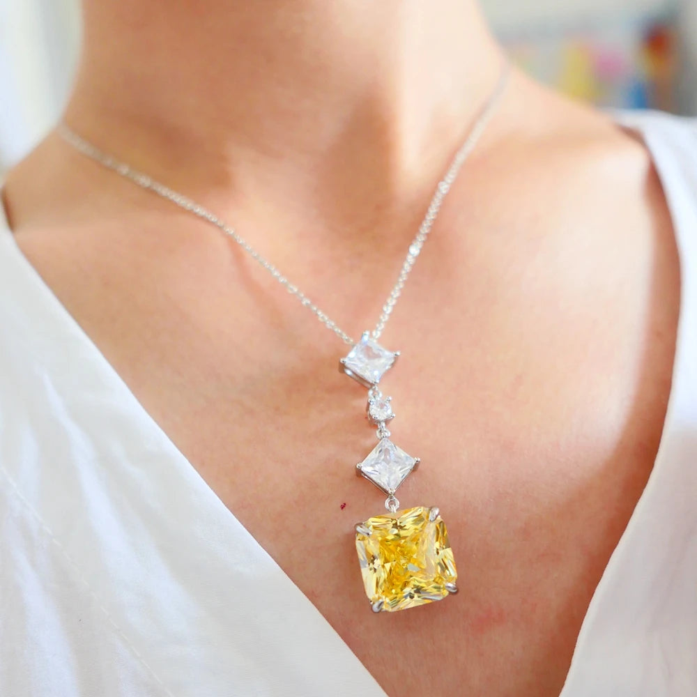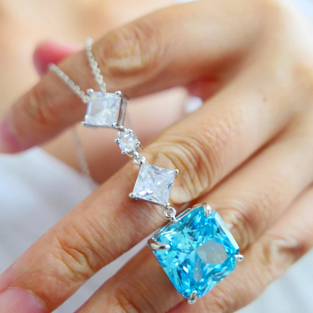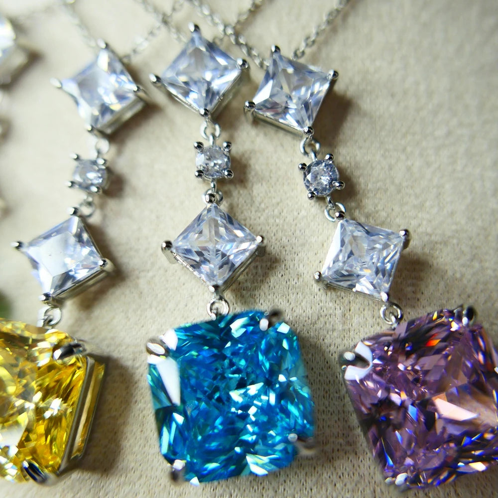 KQDANCE Simple Created 15mm Square Emerald Pink Yellow Blue CZ Diamond Pendants Necklace with Green Stone Jewelry For Women