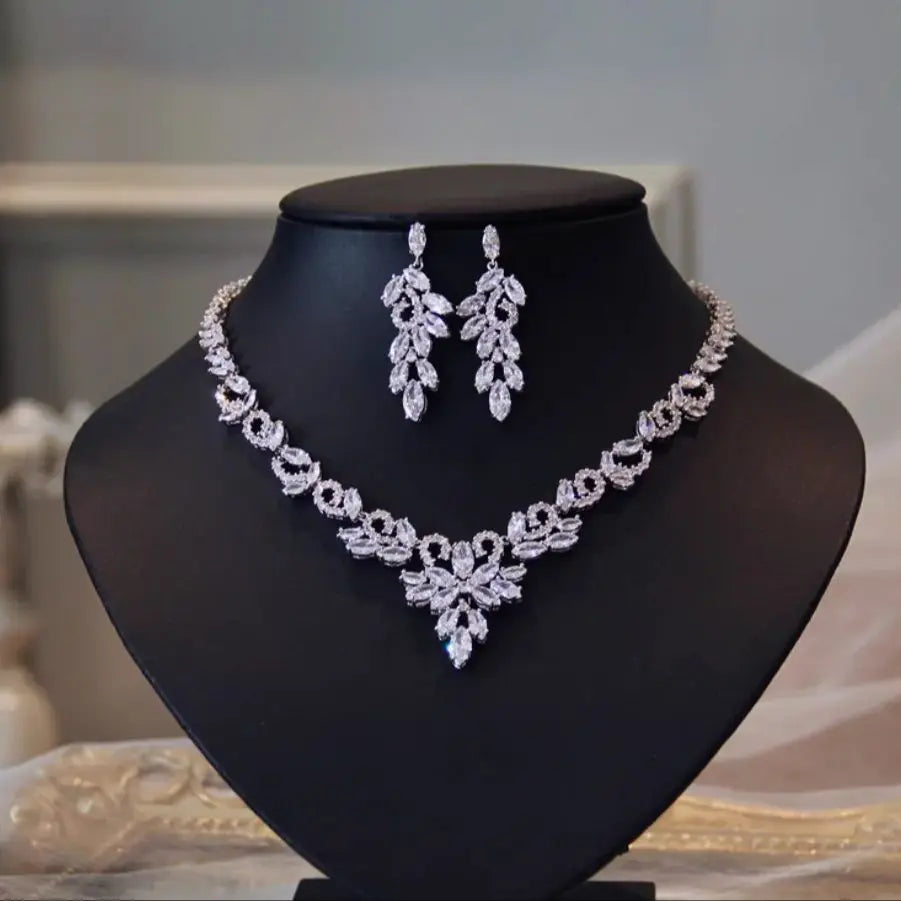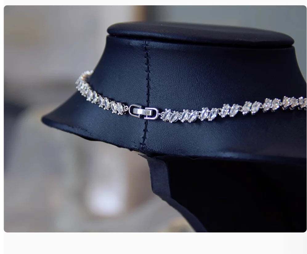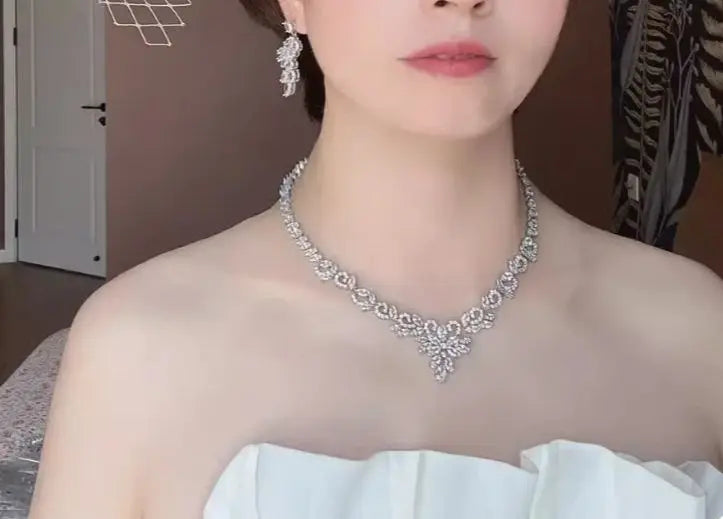 Light luxe zircon necklace Earrings set chain Bridal wedding accessories Wedding Dress Evening Dinner party annual party jewelry