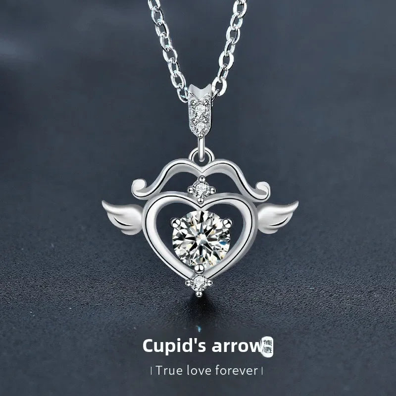 Light luxury 925 sterling silver moissanite cupid's arrow necklace for women, anniversary birthday gift