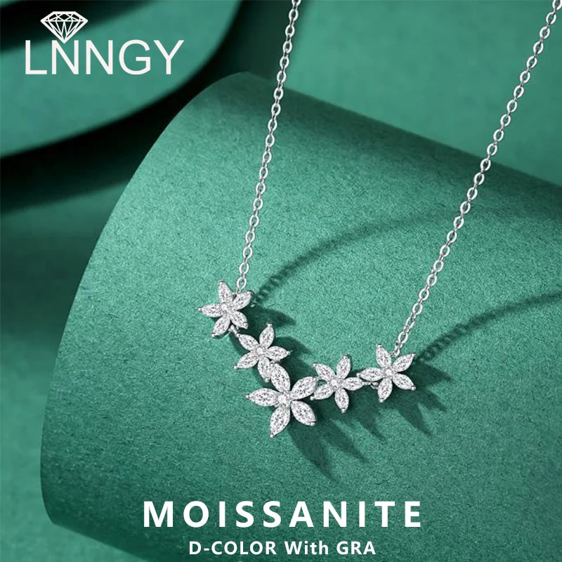 Lnngy Exquisite Moissanite Diamond Necklace for Women Pure 925 Sterling Silver Flower Pendant Necklaces 2025 Trend Jewelry