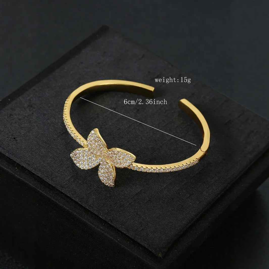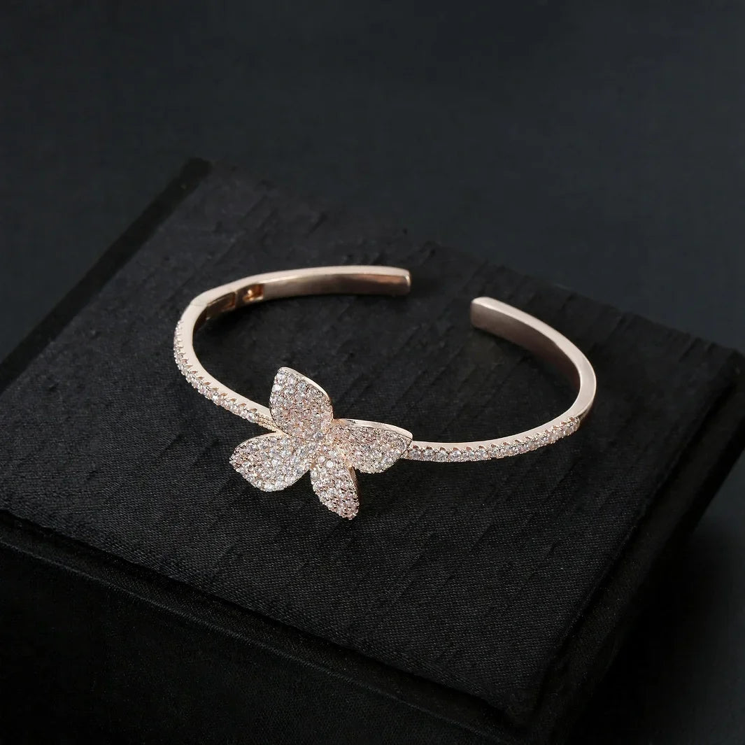 Luxurious White Zircon Four Leaf Clover Open Hand Bracelet